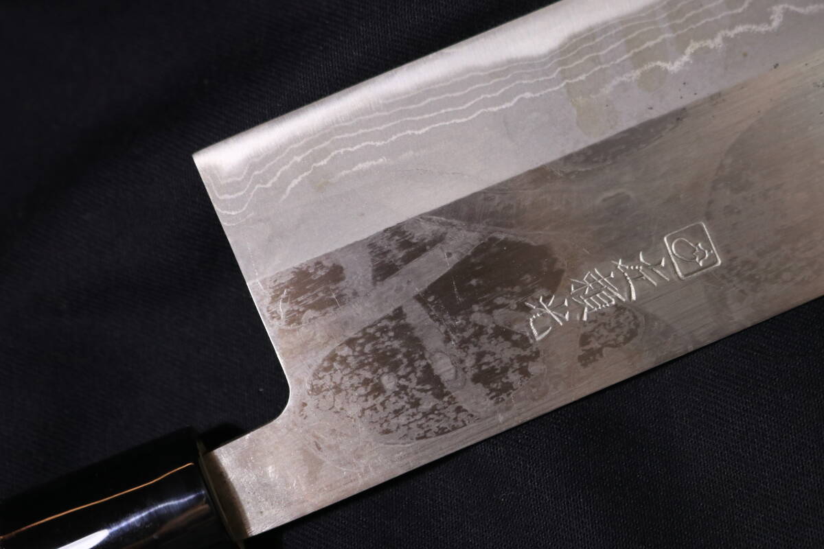 165mm 墨流し 西型 菜切り包丁 在銘 左頼光
