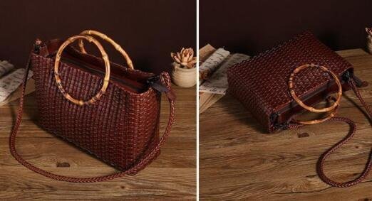 1円 極美品 ★かごバック バスケット 籠バッグ 網代バッグ 天然素材 本革 牛革 トートバッグ 籠 バッグ ハンドメイド バンブーハンドル