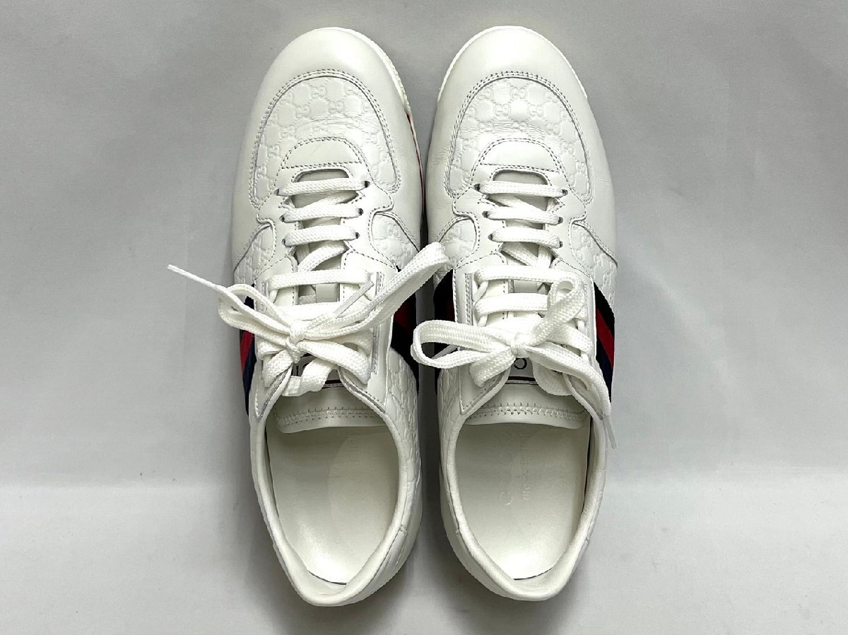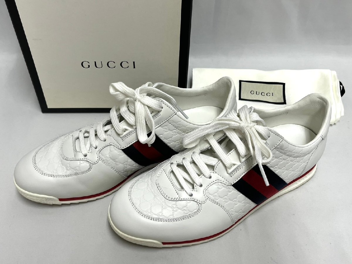 | 状態 | ■ご注意■※必ずご確認ください。 ※画像掲載物のみのお届けとなります。 グッチ スニーカーです。 使用による多少の汚れなどがありますが、比較的きれいな状態です。 ※中古買取品のためサイズ交換での返品、交換はいたしかねます。 ご理解の上、ご入札をお願いいたします。 【写真3枚目】 スニーカー底 汚れがあります。 【写真4枚目】 つま先、かかと部分 多少のシワがあります。 【写真7枚目】 スニーカー内側 少し汚れがあります。 【写真8枚目】 スニーカー表 一部汚れがあります。 【写真10枚目】 保存袋がついています。(写真左上) 保存箱がついていますが、スレや汚れがあります。 ※以下をご理解の上、ご入札お願いいたします。 ・画像ではわかりにくい痛みがある場合がございます。 ・中古品のため相応のダメージ(小傷・汚れなど)がございます。 ・経年劣化による相応のダメージがございます。 ・完品、未使用品、極上品をお求めの方は入札をご遠慮下さい。 【重要】 誠に恐れ入りますが、弊社では商品に不備があった場合商品の交換は一切致しておりません。 弊社の商品は中古品のため全て一点物となります為商品に不備がある場合はご返品後のご返金のみの対応となります。 【お支払い金額について】 オークション商品:ご落札金額+消費税+送料 【送料】 ヤマト宅急便 全国一律1,200円(北海道・沖縄は800円UP) 【商品代引きの場合】 オークション商品:ご落札金額+消費税+送料+代引き手数料 代引き手数料は以下の通りです。
