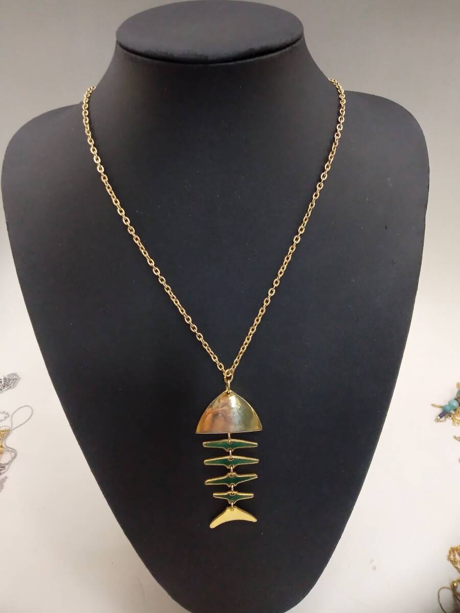 0919-0015 中古★ファッション ネックレス ゴールド 魚骨 アンティーク ヴィンテージ 70㎝