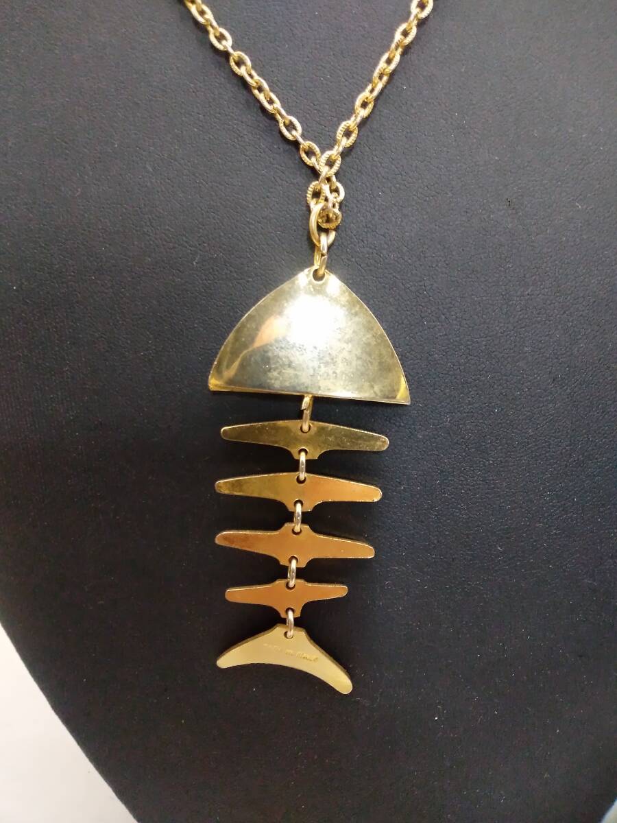 0820-0015 中古★ファッション ネックレス ゴールド 魚骨 アンティーク ヴィンテージ 70㎝