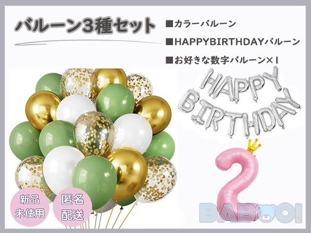 カラー : HAPPY BIRTHDAY (銀色) カラーバルーン (グリーン ゴールド)