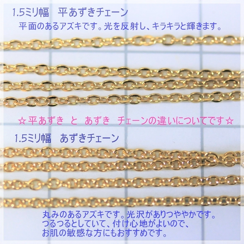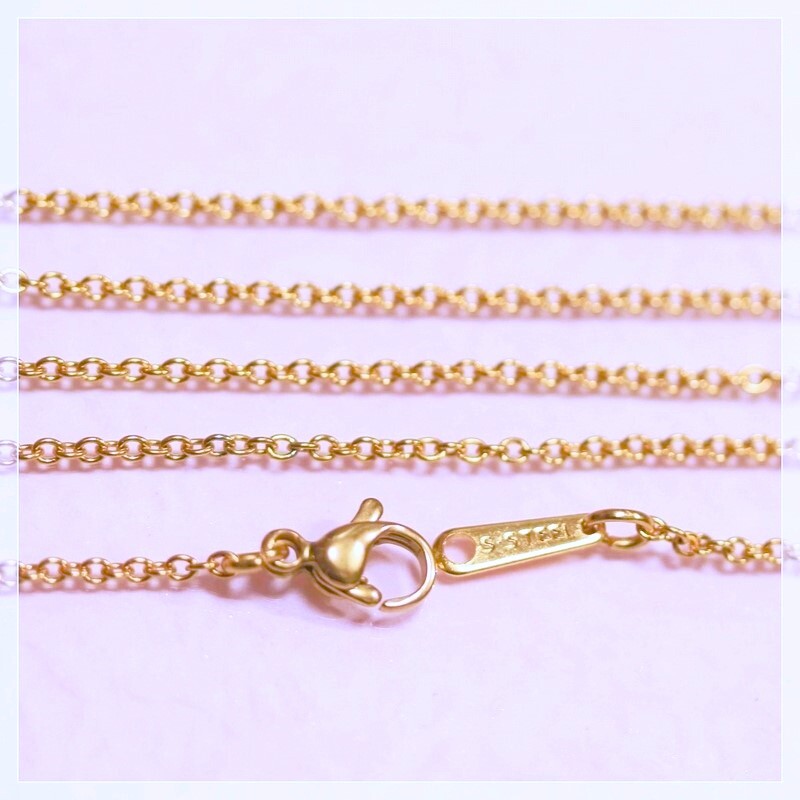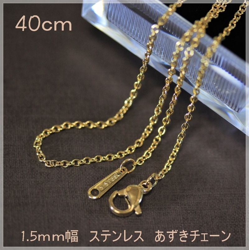 N7341/40cm ステンレス製 あずきチェーン 1.5mm幅 細目 金色 18金加工 小判アズキ ステンレスチェーン チェーンのみ 女性用 38cm有り