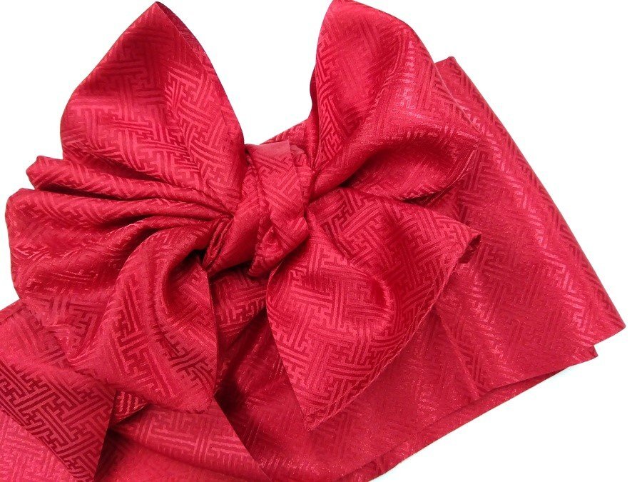 キッズ帯 兵児帯 へこおび 化繊 ナイロン 赤無地 サヤ地紋あり 262