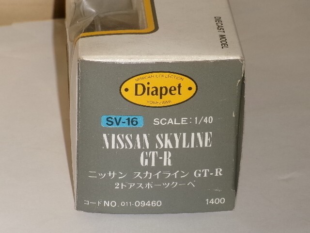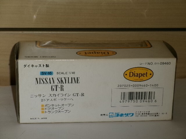 1/40 Diapet ニッサン スカイライン GT-R 2ドアスポーツクーペ 黒です。箱に少し傷みがありますので、ご了承の上入札下さい。商品の状況は写真でご判断の上、ノ-クレ-ム・ノ-リタ-ンでお願いします。