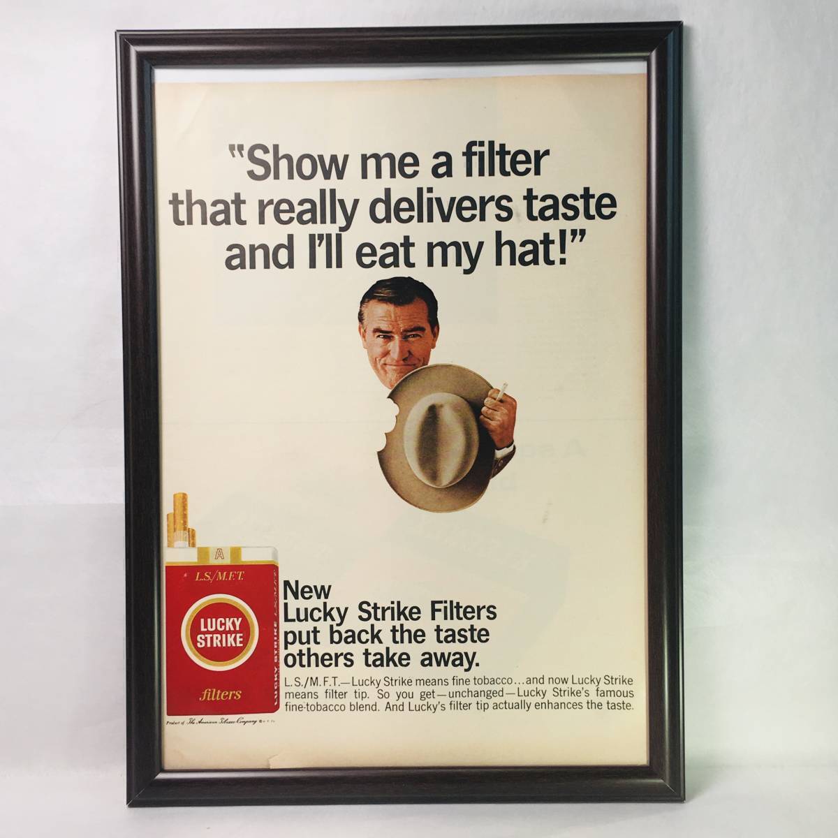 1960年代当時のアメリカの雑誌に掲載されていた『  ラッキーストライク (Lucky Strike) 』の広告を額装いたしました。