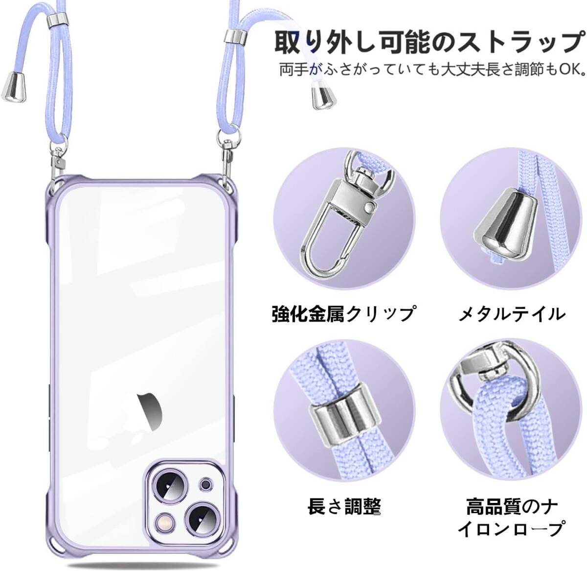 iPhone 14 Plus 用 ケース クリア ショルダーワイヤレス充電対応 (パープル)/S681