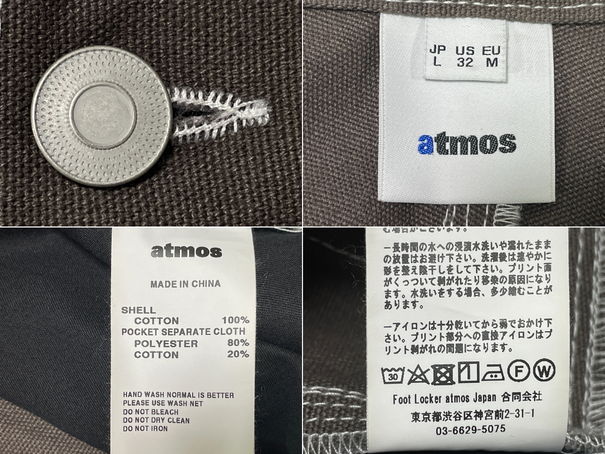 ブランド :atmos カラー : ブラウン 状 態 :USED 美品 アトモス デニム ダブルニーペインターパンツ です。 ダック地のワイドシルエットのカッコ良いペインターパンツです。 使用感も感じない、大変キレイな状態です。お探しの方お勧めの1本です。 ■サイズ:製品表記 L ■サイズ:実寸(平置き) ウエスト 43.0cm (×2=約86cm)W34相当 股下 76.5cm 股上 32.0cm もも幅 36.5cm すそ幅 22.0cm | ||
