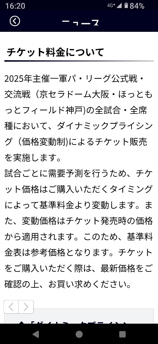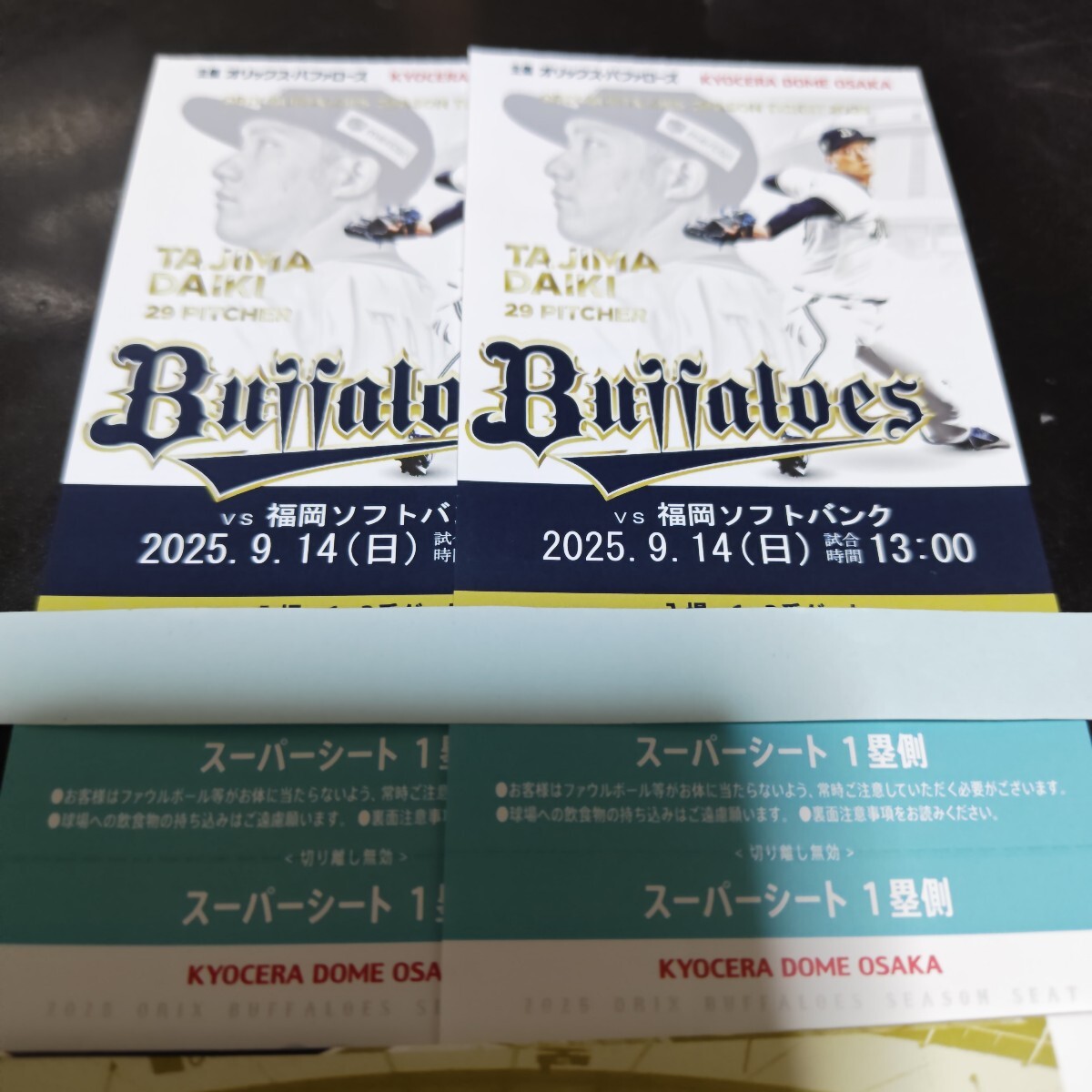 9月14日(日)オリックスバファローズvs福岡ソフトバンクホークス 京セラドーム大阪 スーパーシート(S指定席)1塁側
