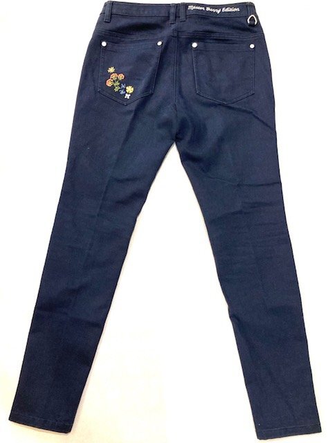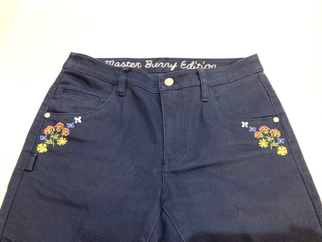 ★美品★ Master Bunny Edition マスターバニー ゴルフウェア 刺繍 花柄 紺色 デニム パンツ レディース |