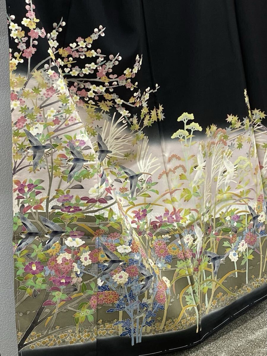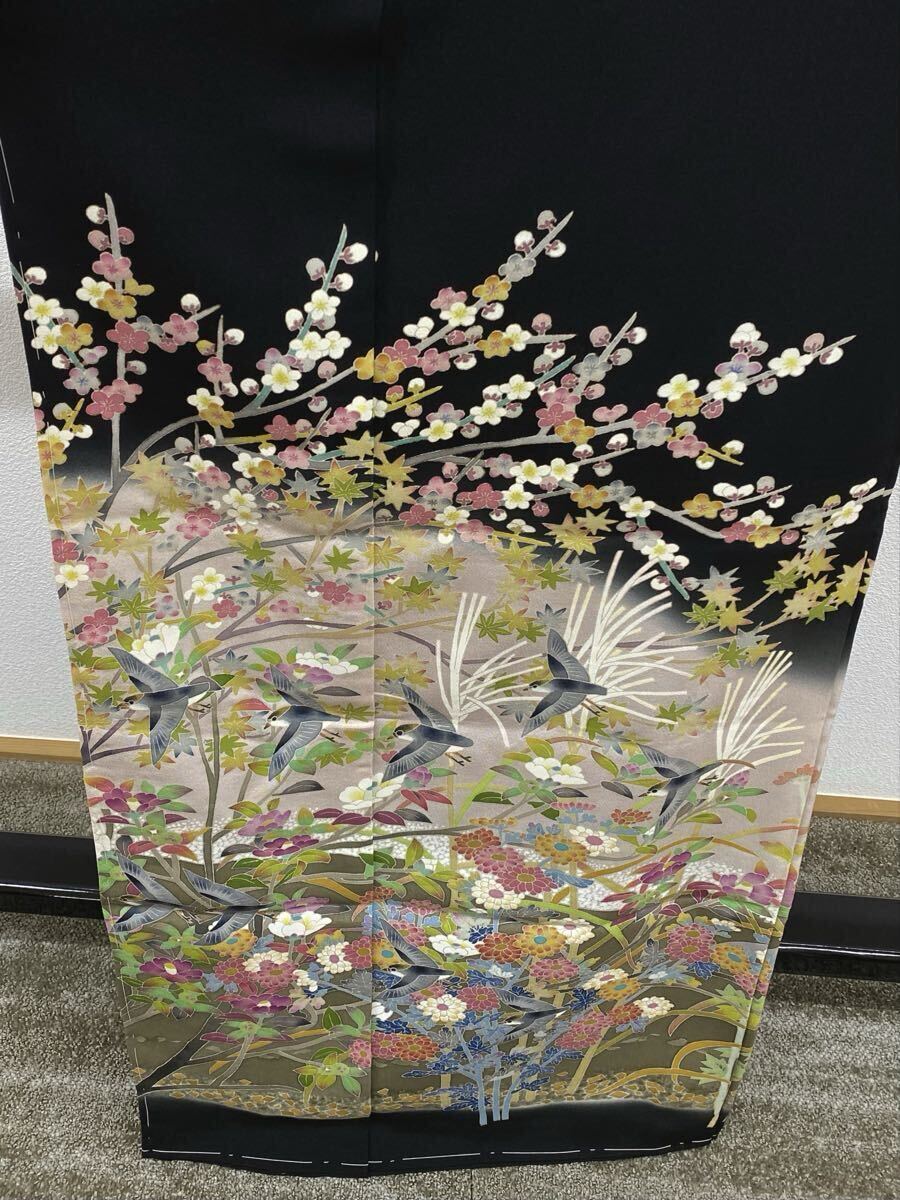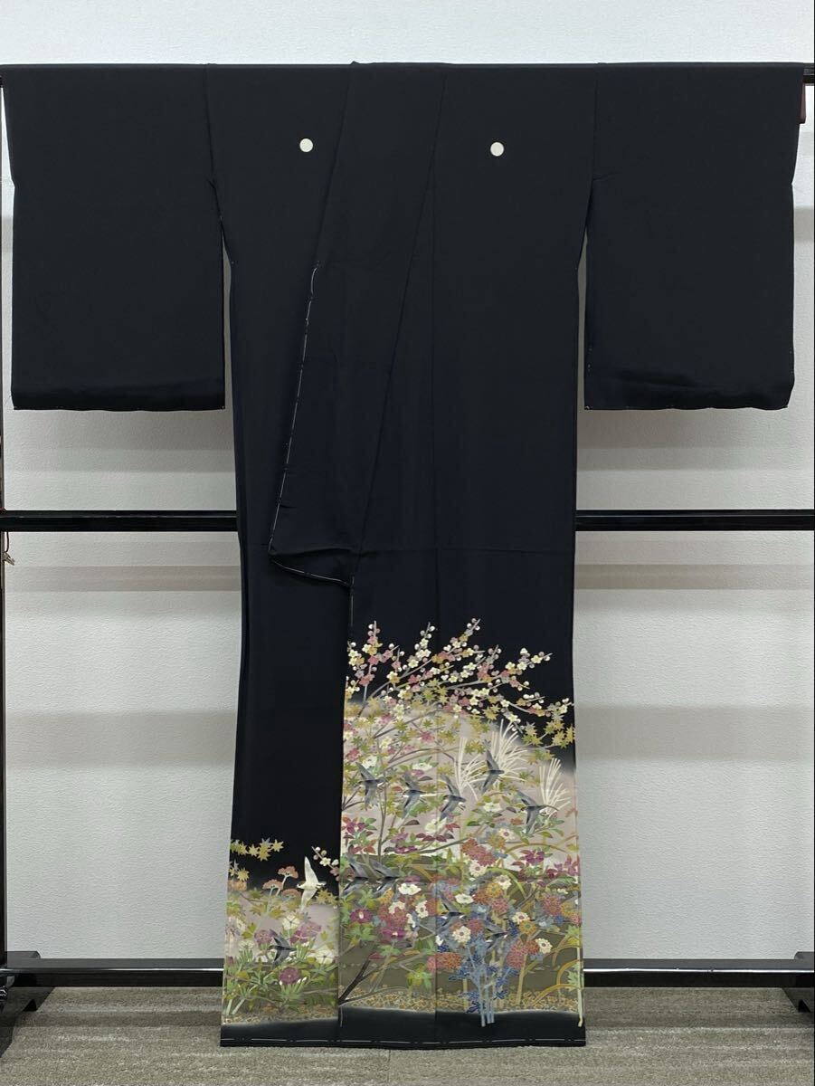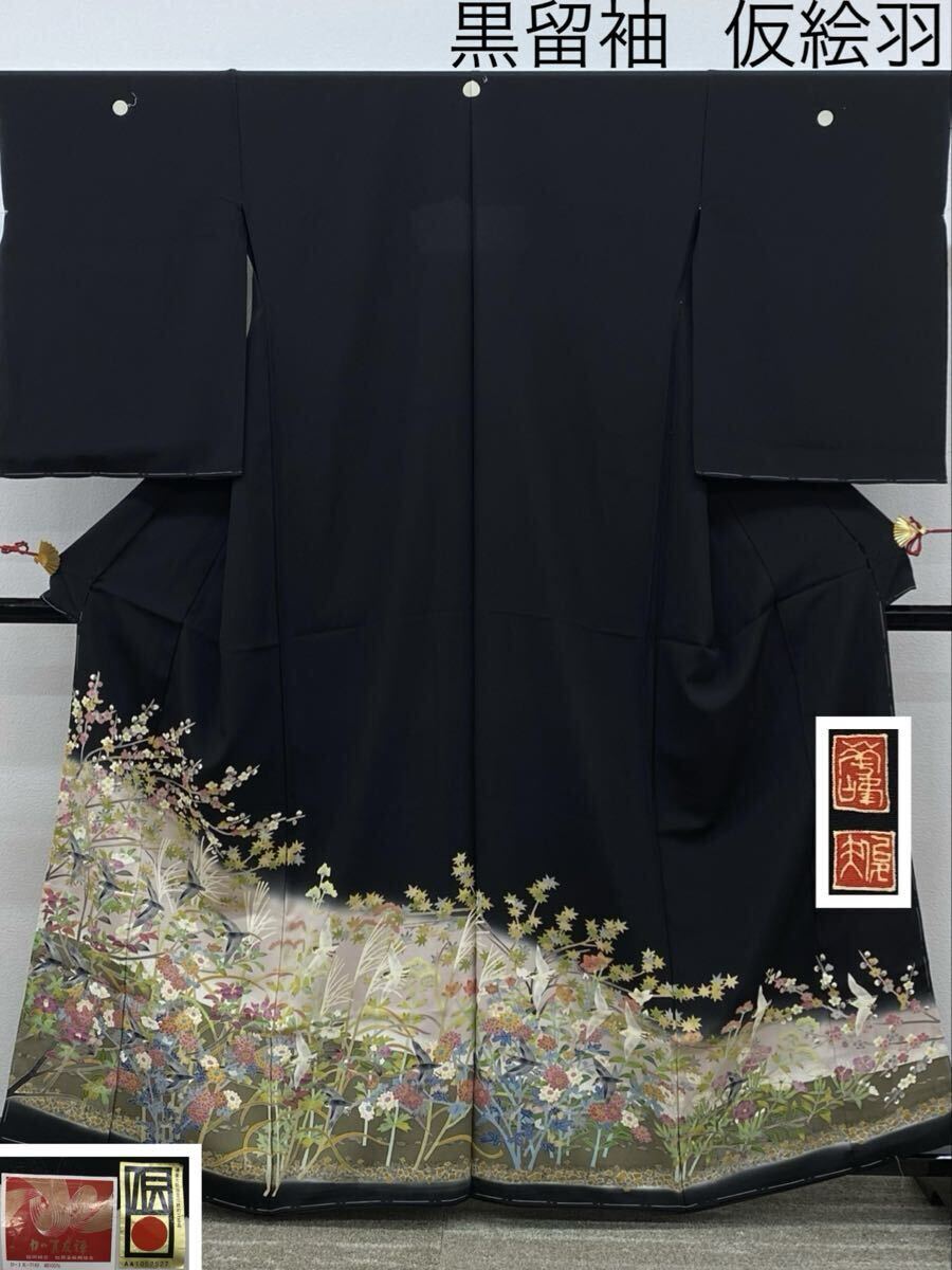 百貫華峰 加賀友禅 黒留袖 落款入 仮絵羽 未仕立て品 鳥 正絹