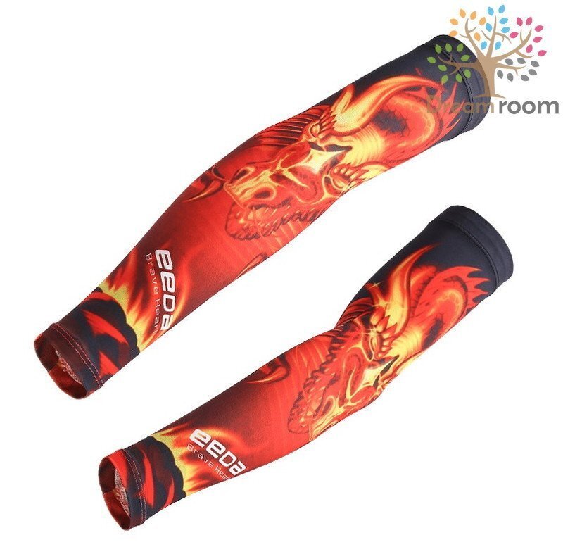 1スタ☆99%UVカット!EEDA デザインアームカバー F-028【M】サポーター 腕カバー 日焼け 紫外線防止 吸汗速乾 スポーツ 乗馬 ゴルフ
