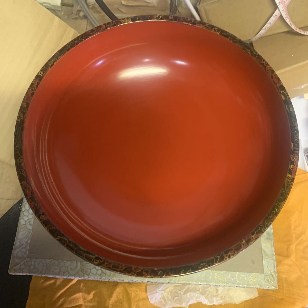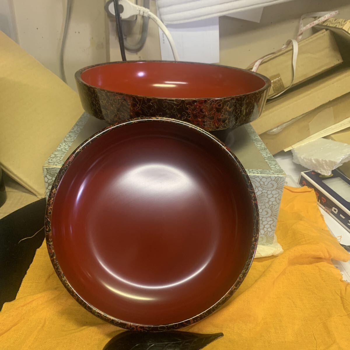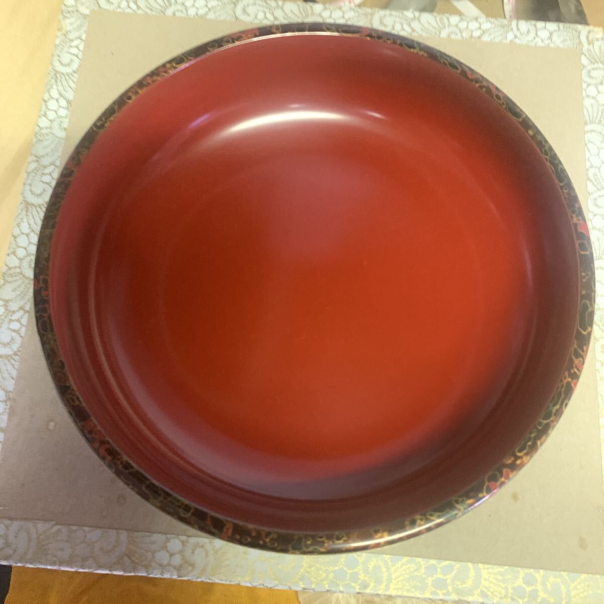 大きいサイズ直径約22センチ高さ約7.5センチ小さいサイズ直径約17.5センチ深さ約4.5センチ底面にすり傷共書きがあります。ノークレームノーリターンでお願いします