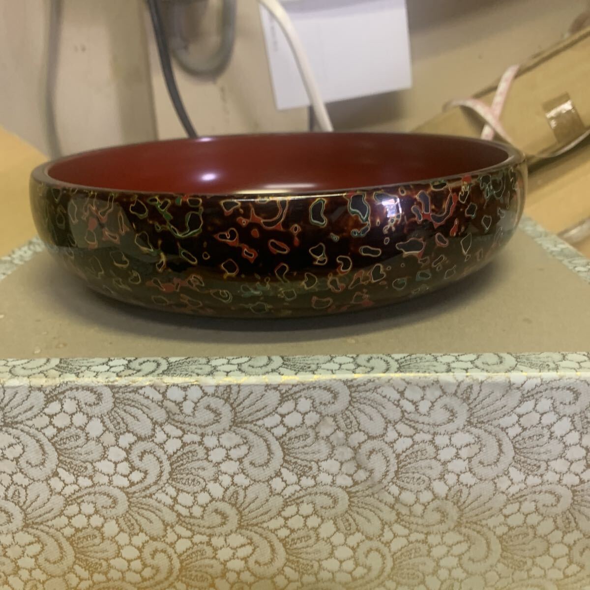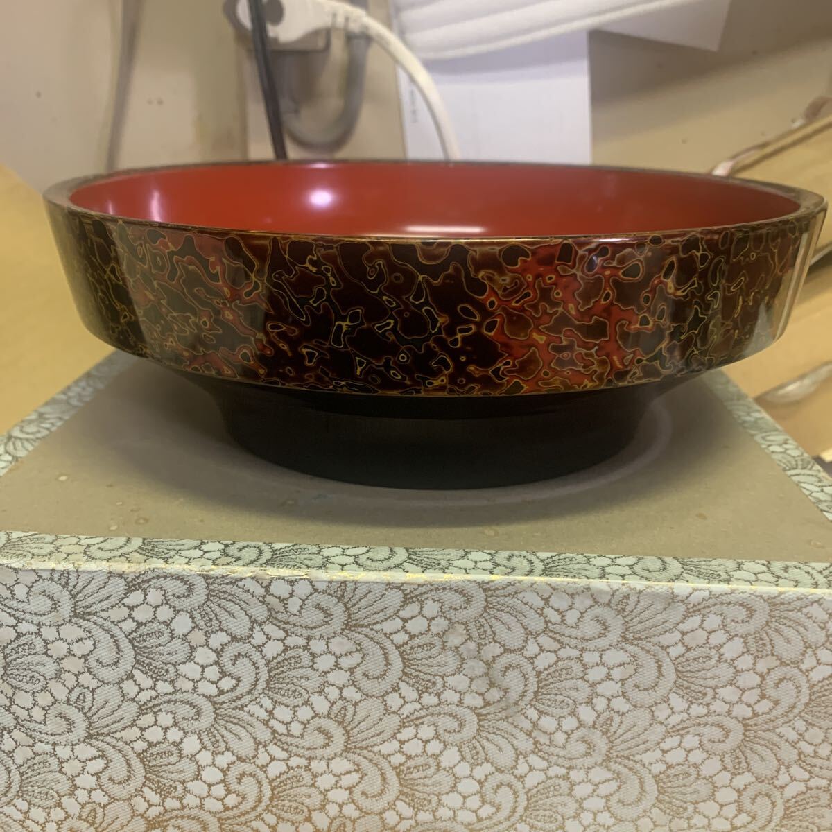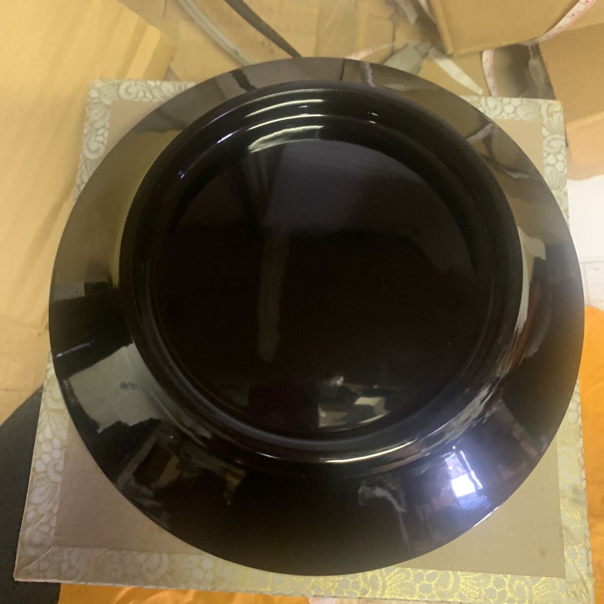 大きいサイズ直径約22センチ高さ約7.5センチ小さいサイズ直径約17.5センチ深さ約4.5センチ底面にすり傷共書きがあります。ノークレームノーリターンでお願いします