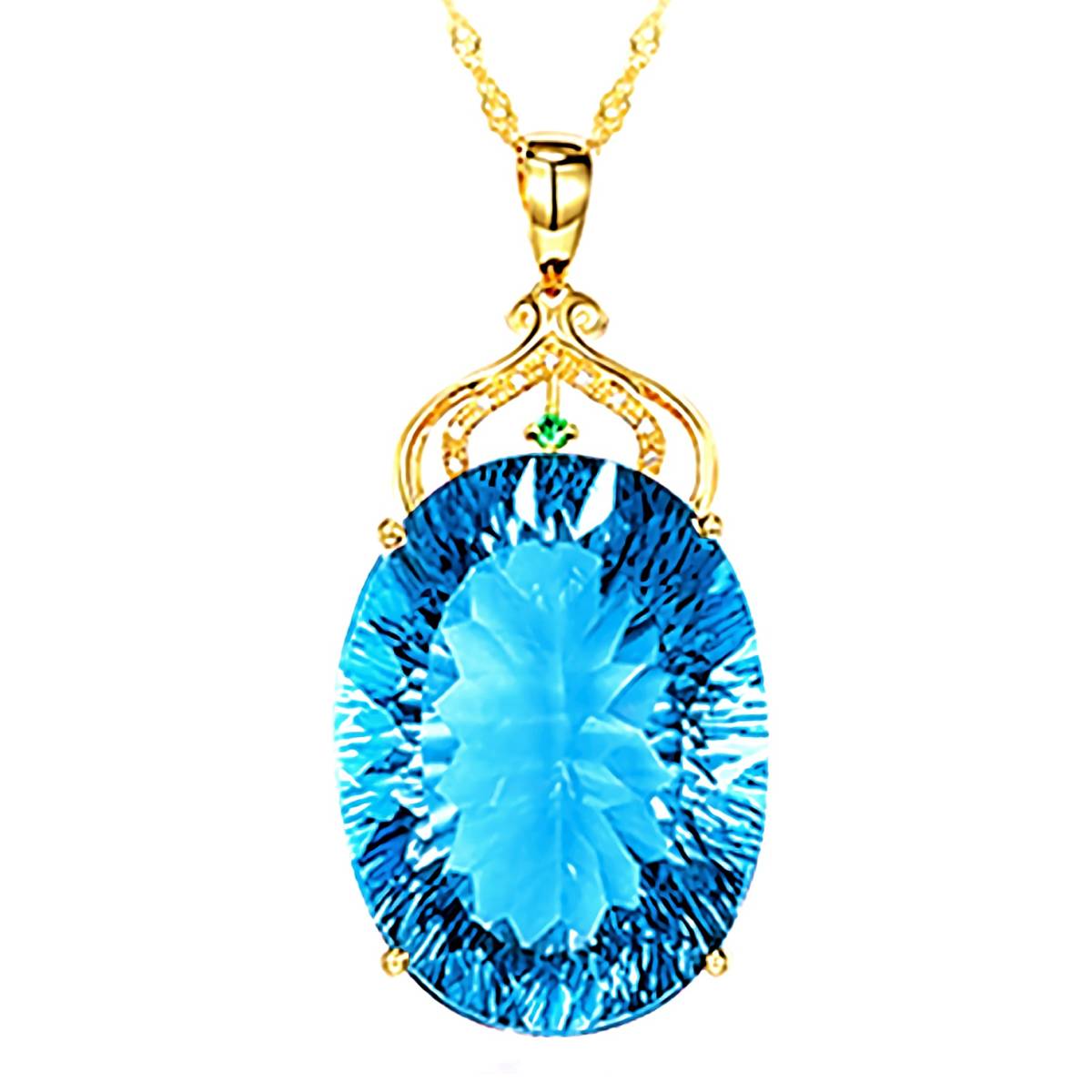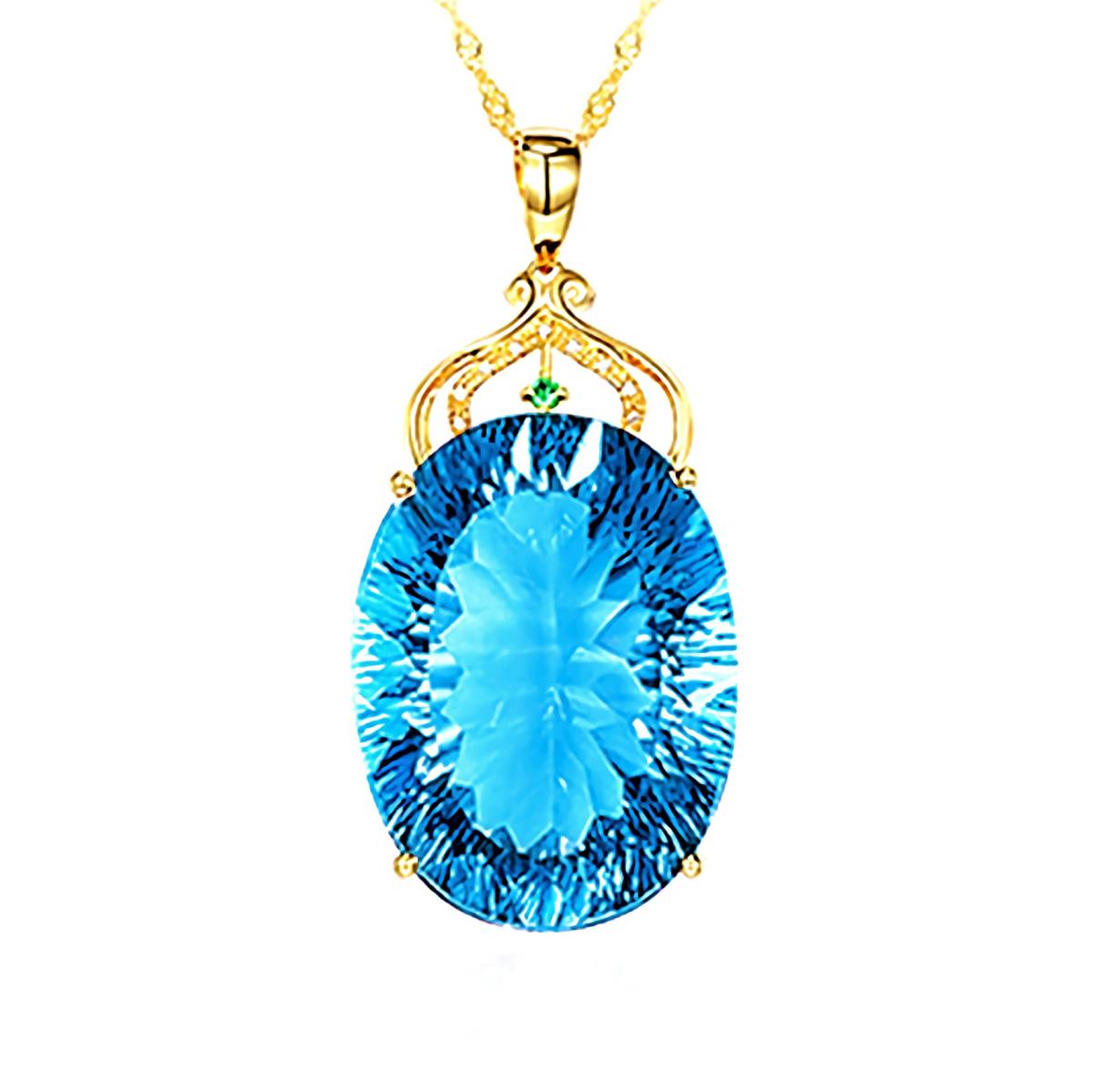 こちら存在感あるアクアマリンに金彩が映えるK18GFゴールドネックレスとなります。