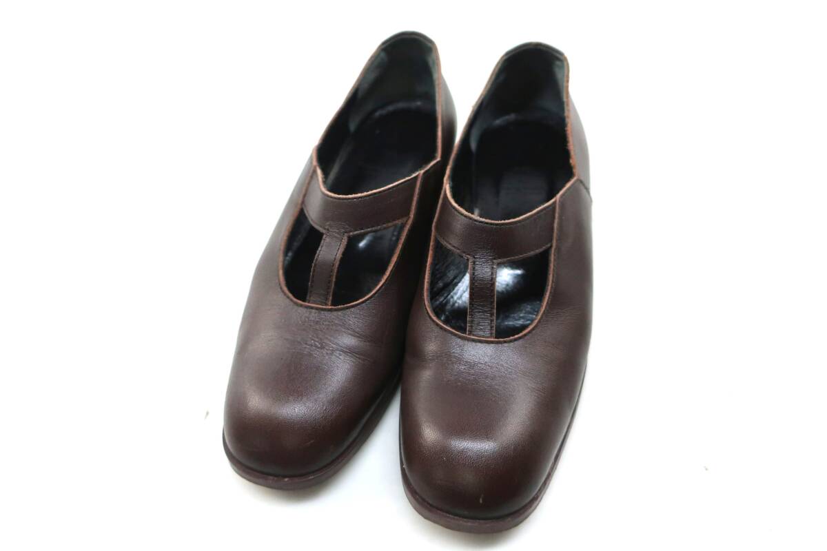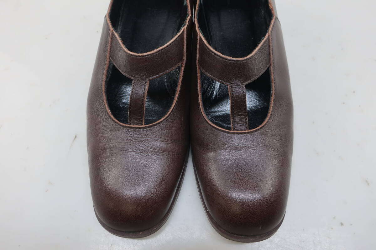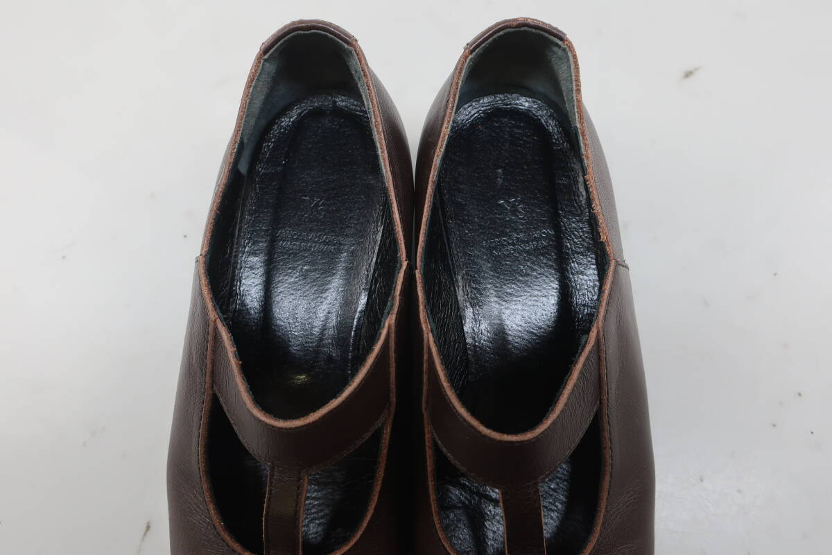 【送900円】660 Y's ワイズ ヨウジヤマモト ローヒールレザーシューズ パンプス カットアウト ブラウン 茶 M 23㎝? 日本製