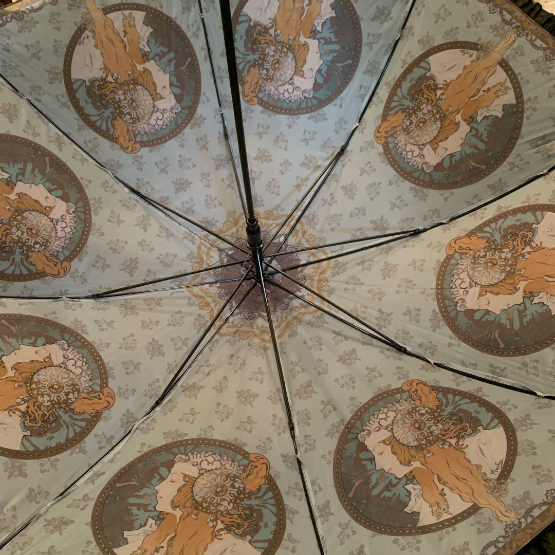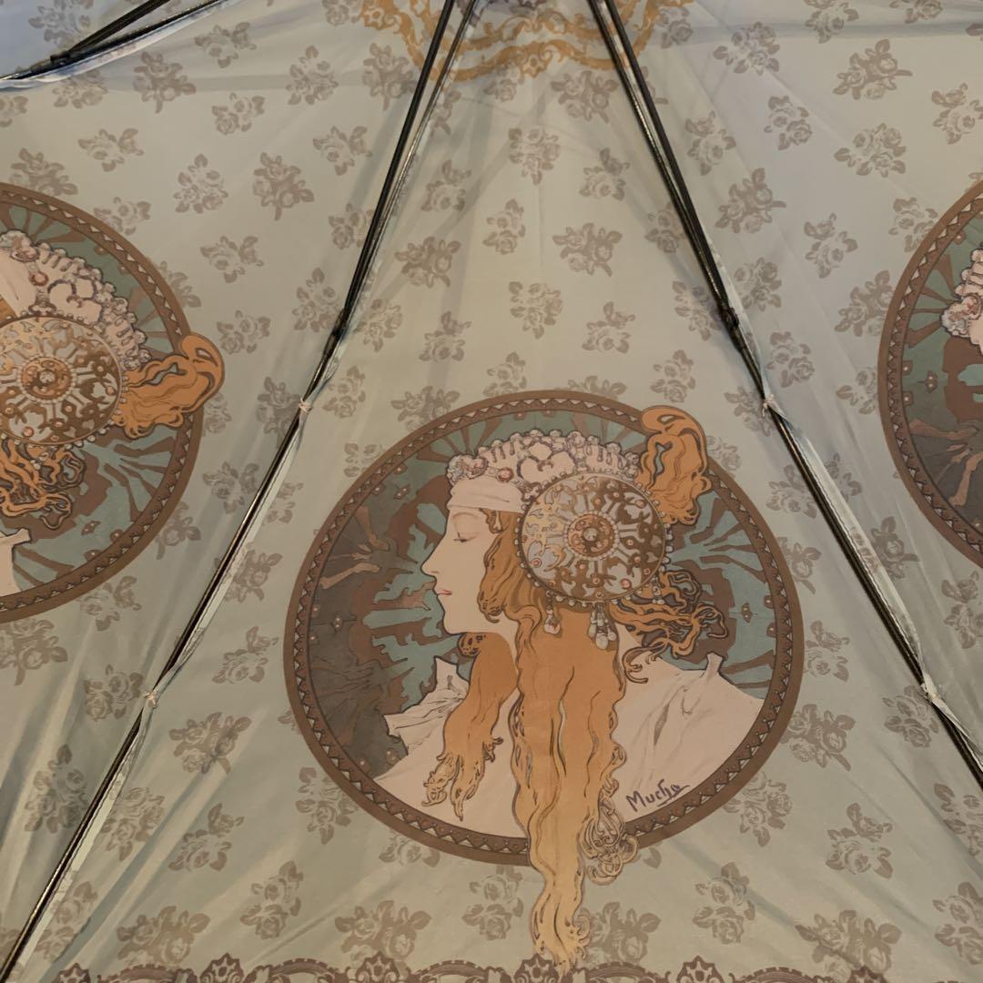 傘を開いたら作家ミュシャの「ブロンド」の絵がデザインされています!