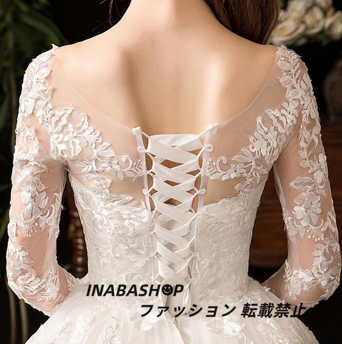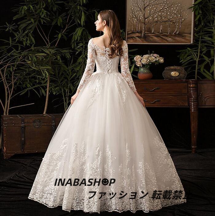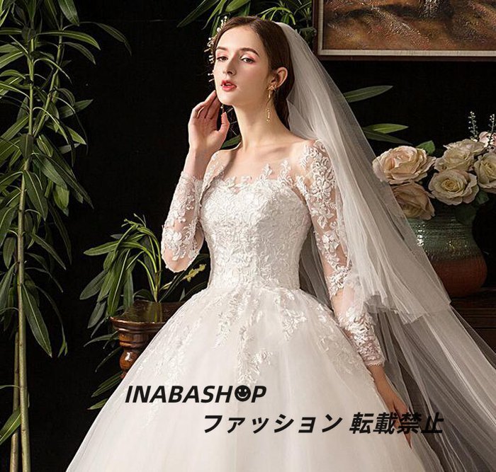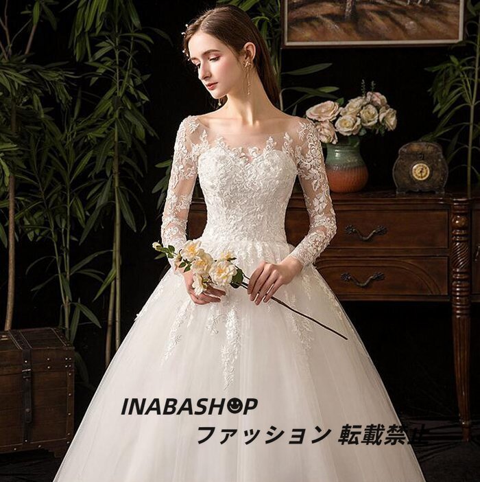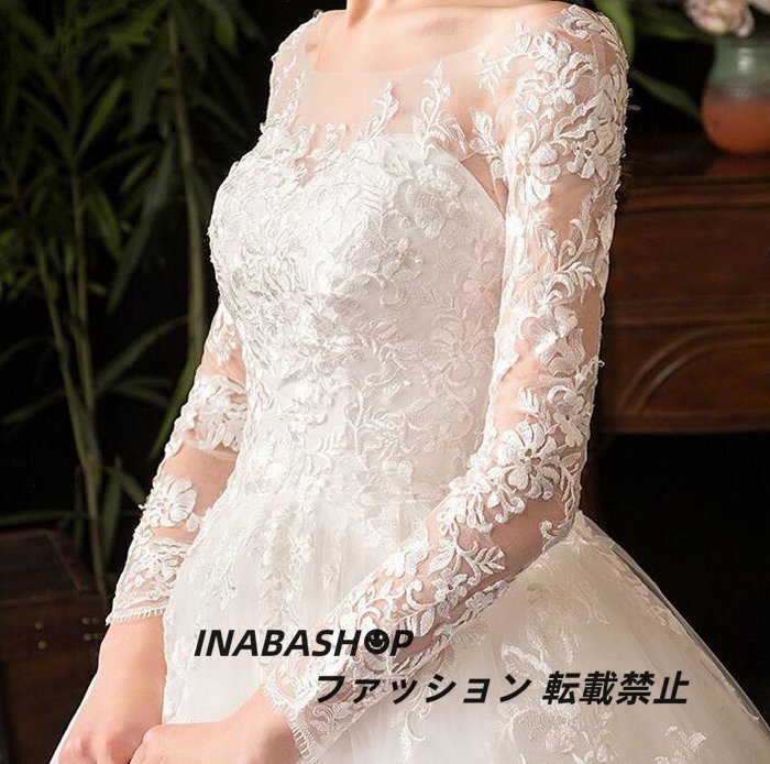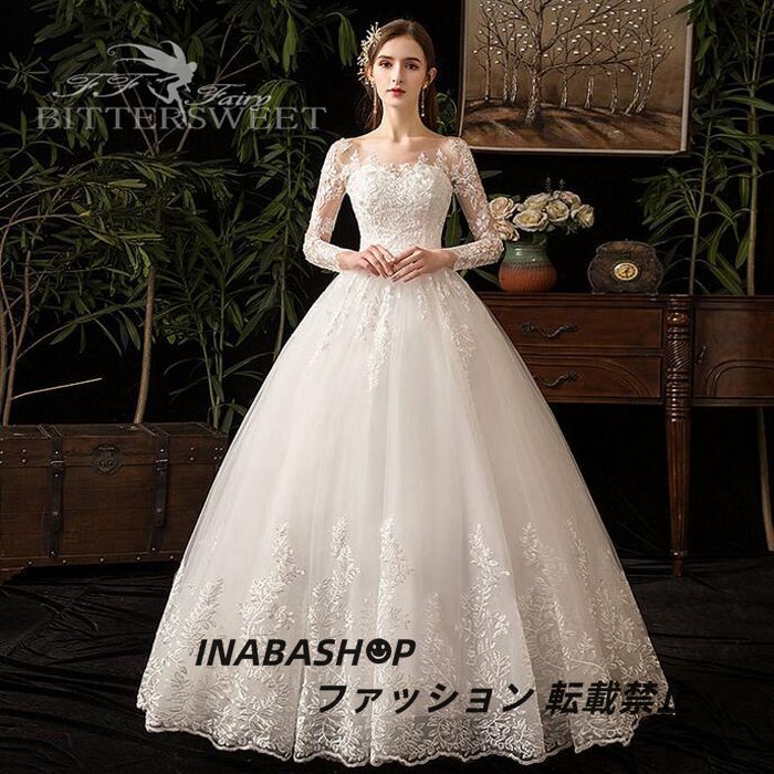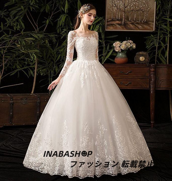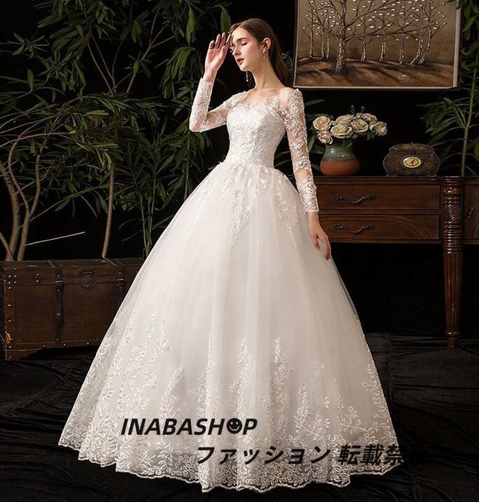 ウェディングドレス ウエディングドレス 長袖 床付きタイプ Aライン ロング 前撮り 後撮り 披露宴 結婚式 演奏会 海外挙式ドレス