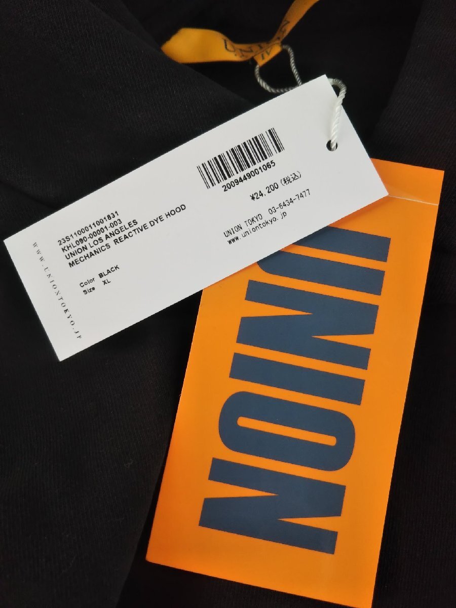 UNION LOS ANGELS ユニオン ロサンゼルス MECHANICS REACTIVE DYE HOOD メカニクス リアクティブ ダイ フーディー ブラック/黒 XLサイズ | |||||||||