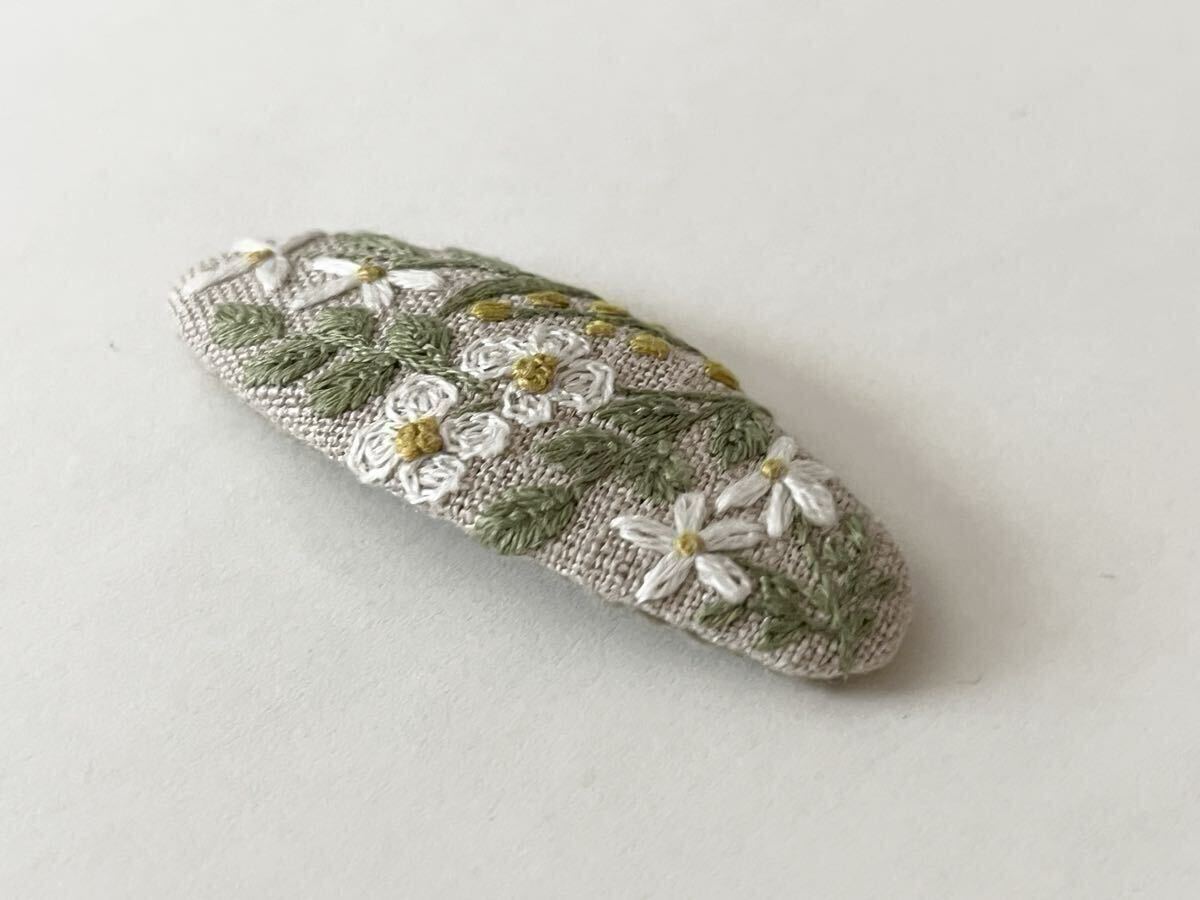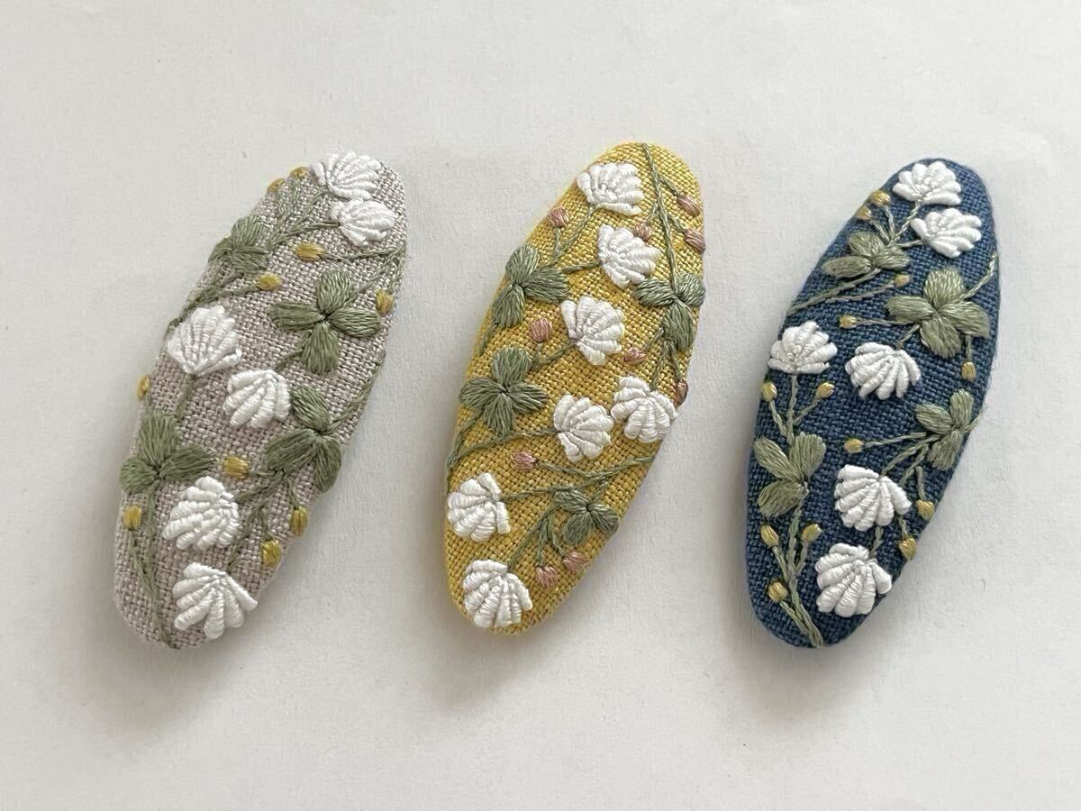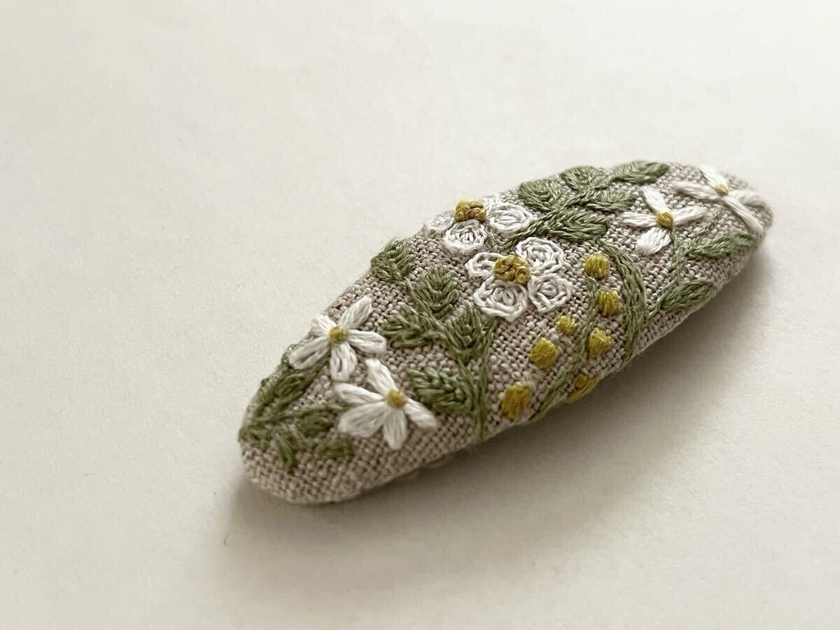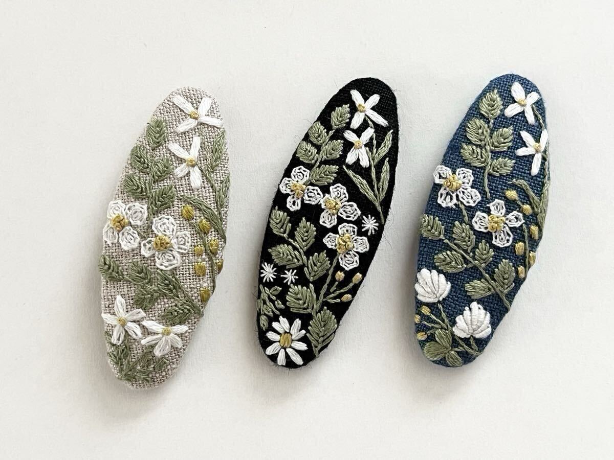 ○白いお花の刺繍をあしらったスリーピン。
