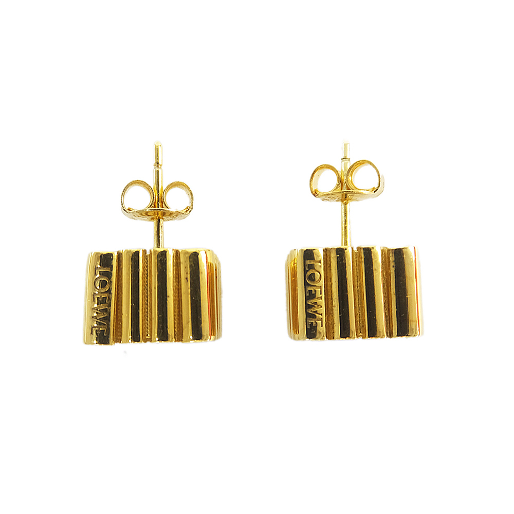 【天白】ロエベ ピアス アナグラムキューブスタッドピアス ゴールドカラー シルバー 約7.5g 耳飾り 一対 アクセサリー