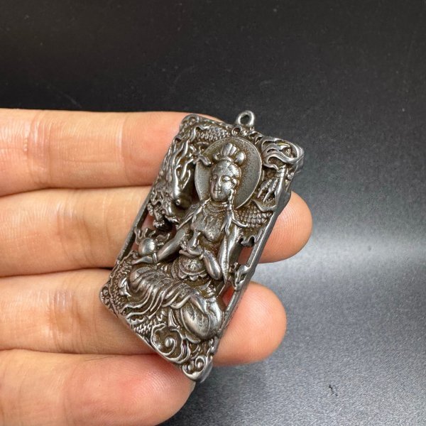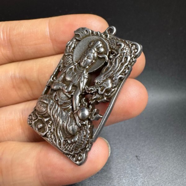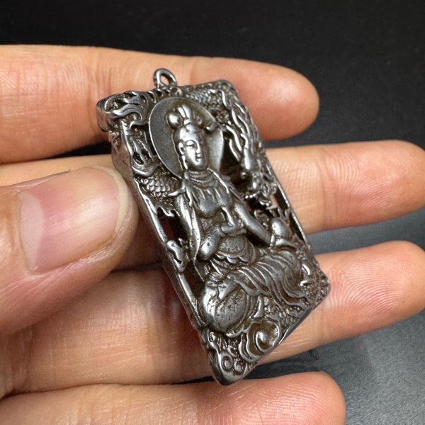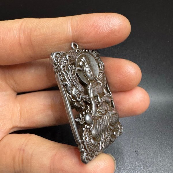 天鉄製(隕石鉄)でつくられた「彫金」の降竜観音像のペンダント