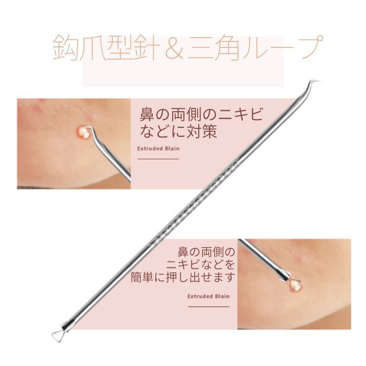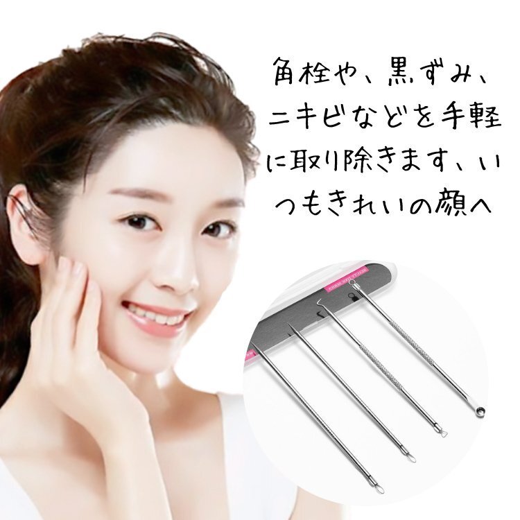 毛穴の角栓や、鼻周りの黒ずみ、ニキビのケアに最適なツール4本セットです。