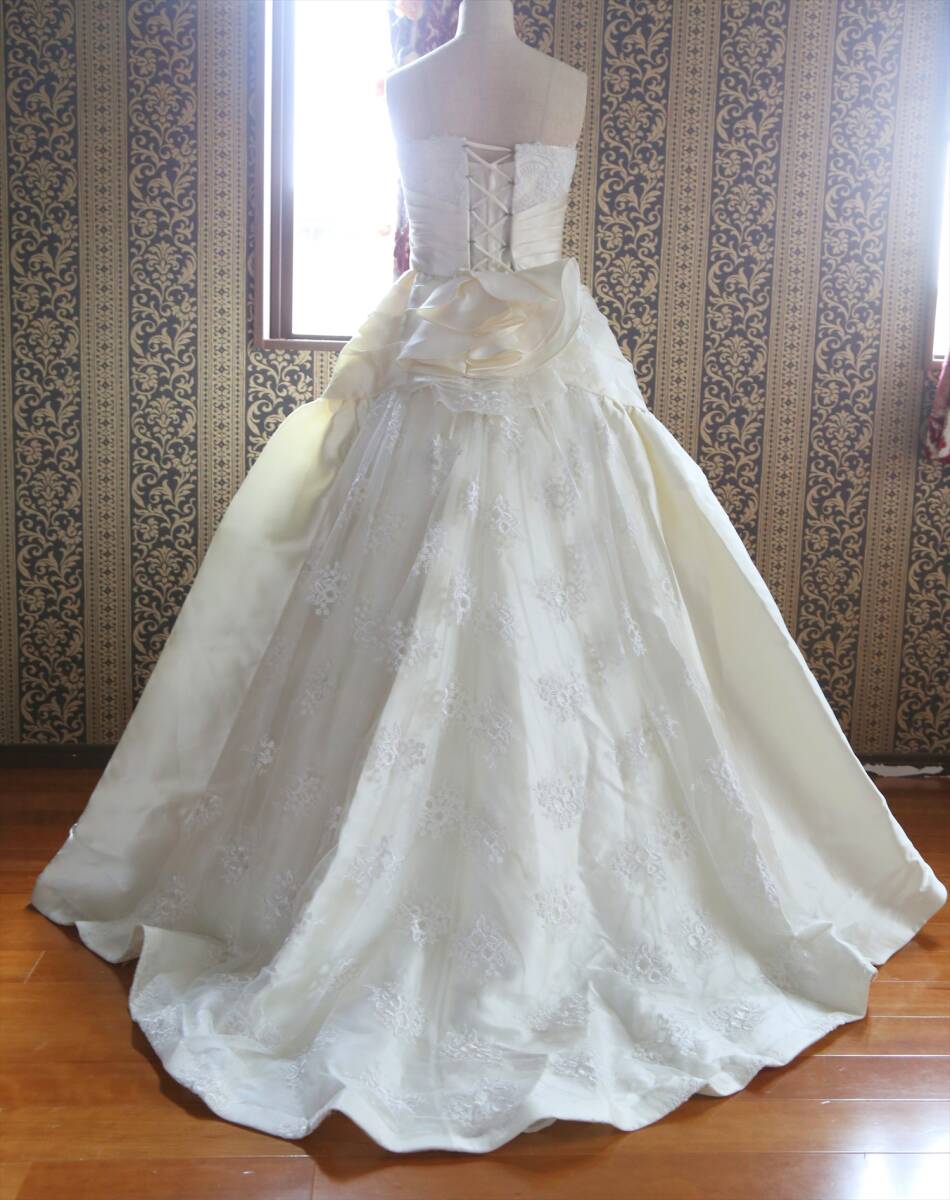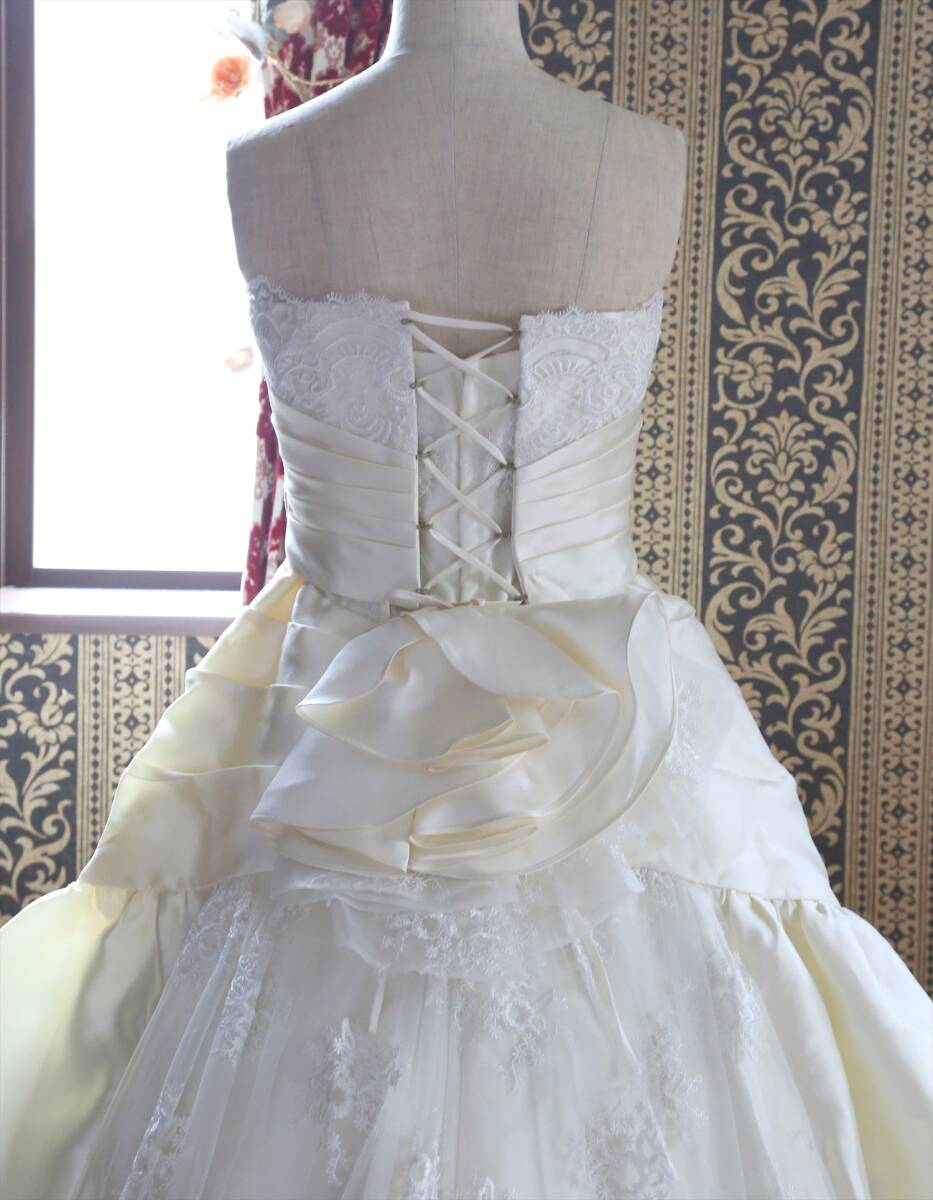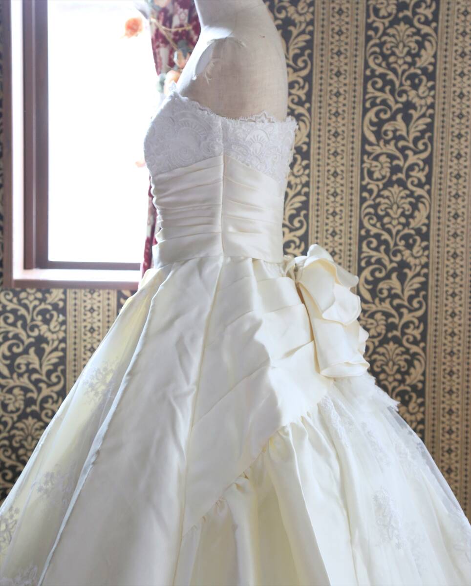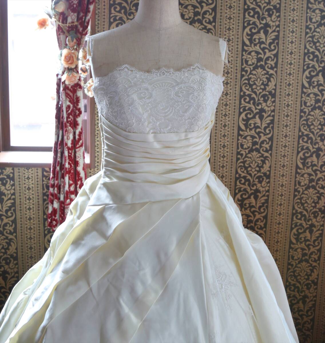 キナリ色ミカドサテン高級ウエディングドレス7号9号11号S~Lサイズ編上げ調節可能