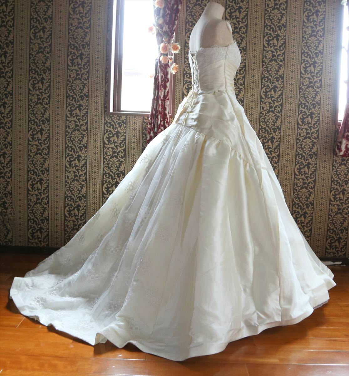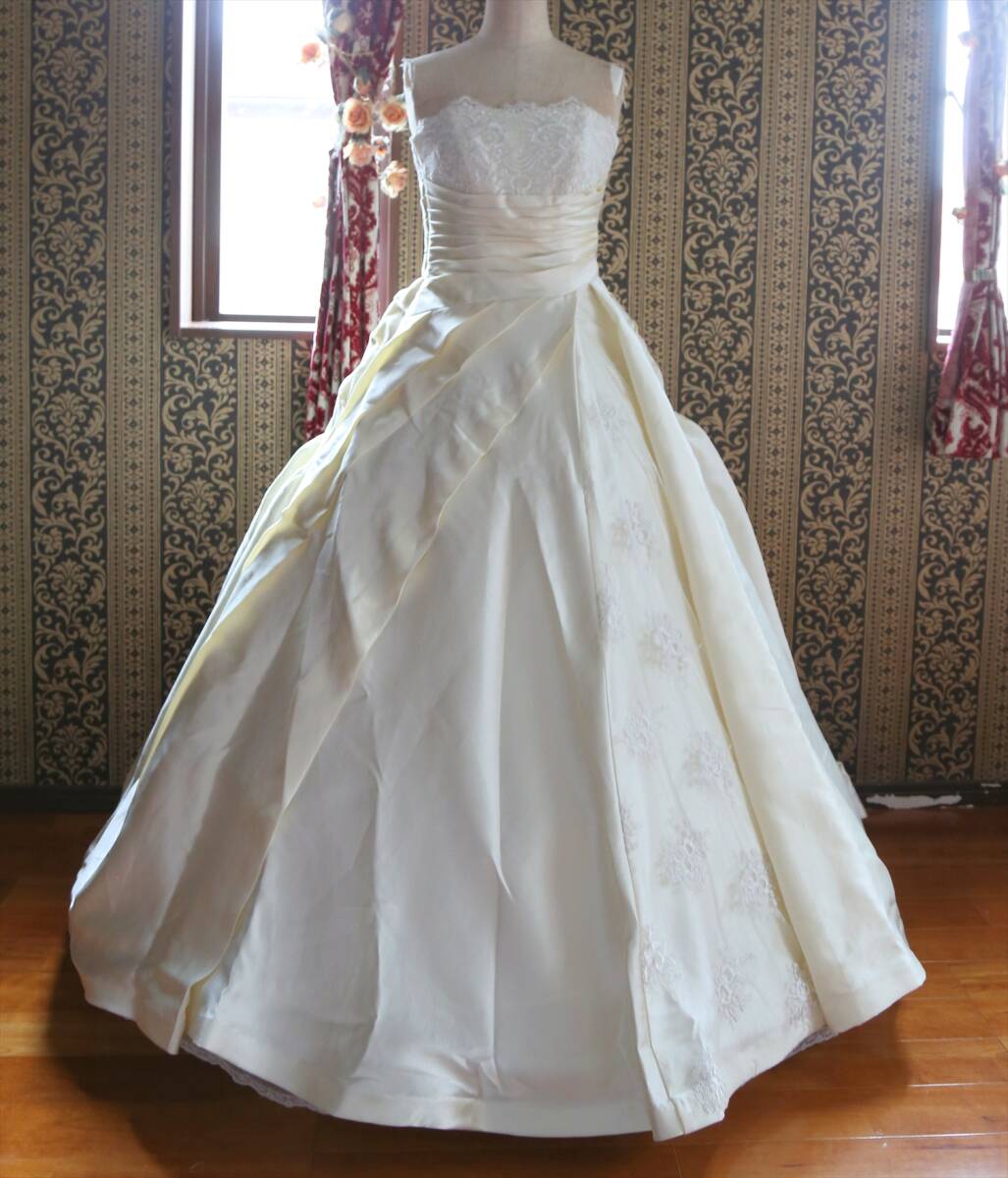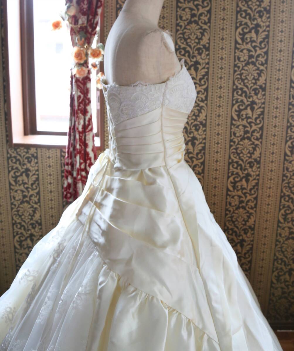 キナリ色ミカドサテン高級ウエディングドレス7号9号11号S~Lサイズ編上げ調節可能