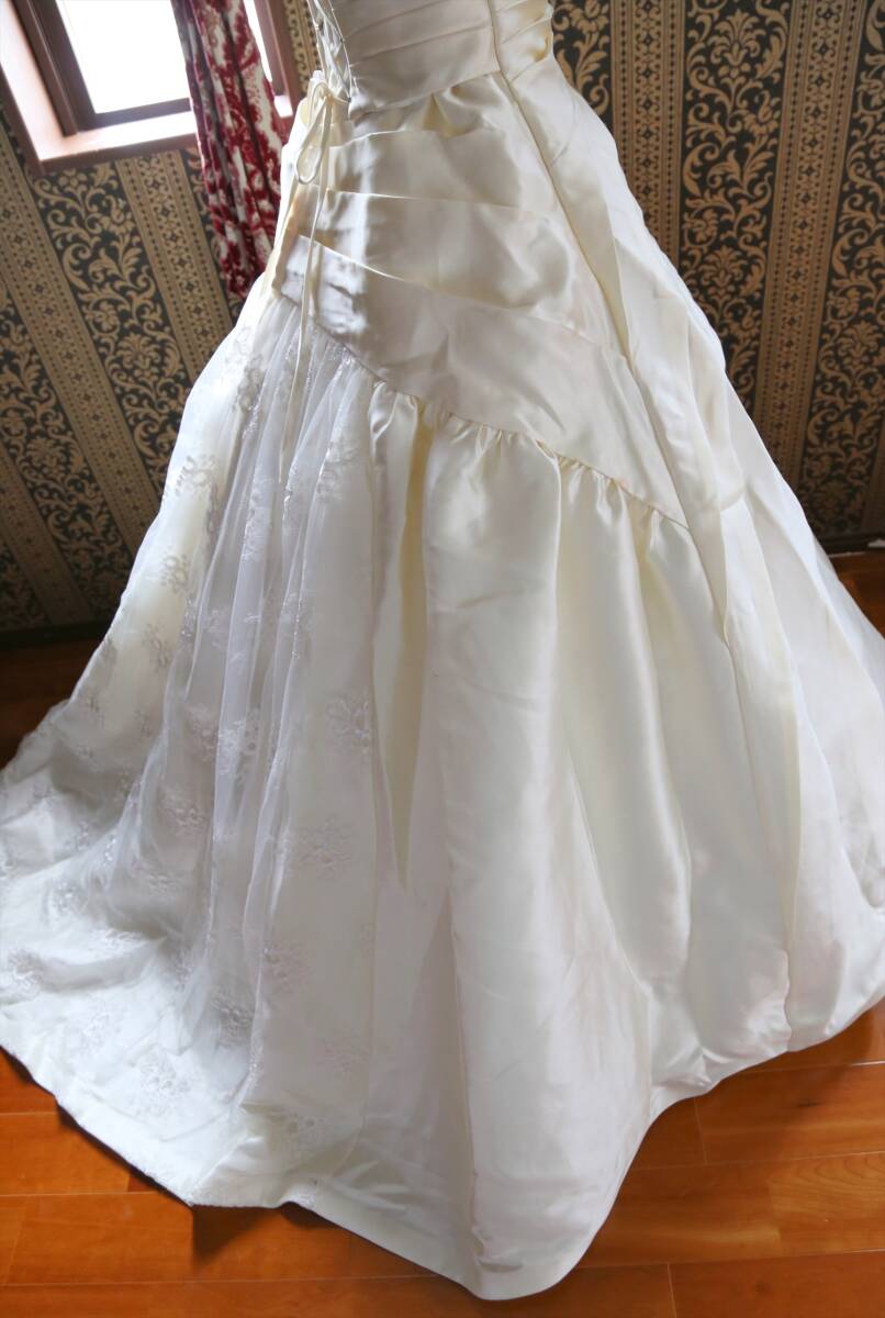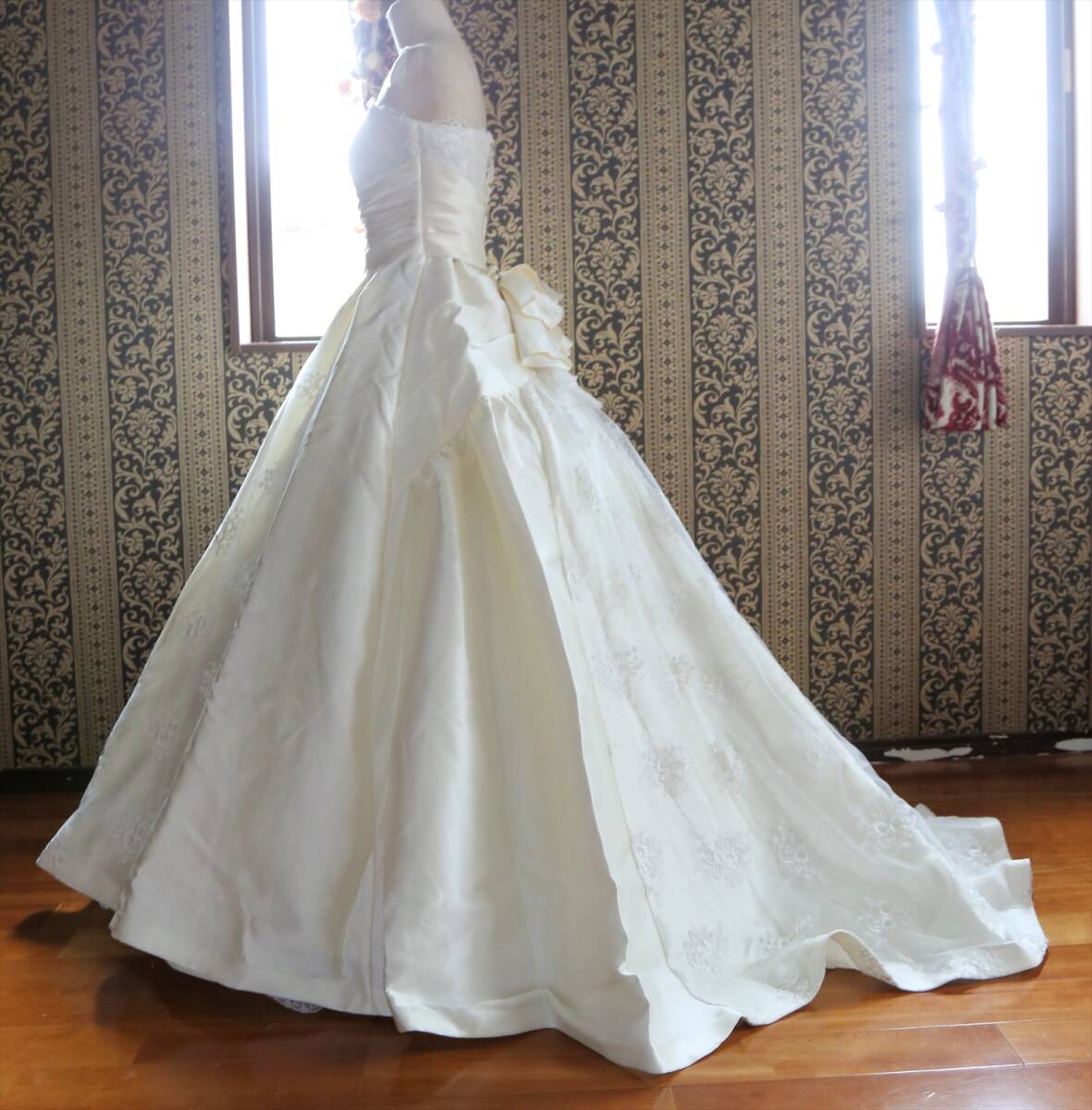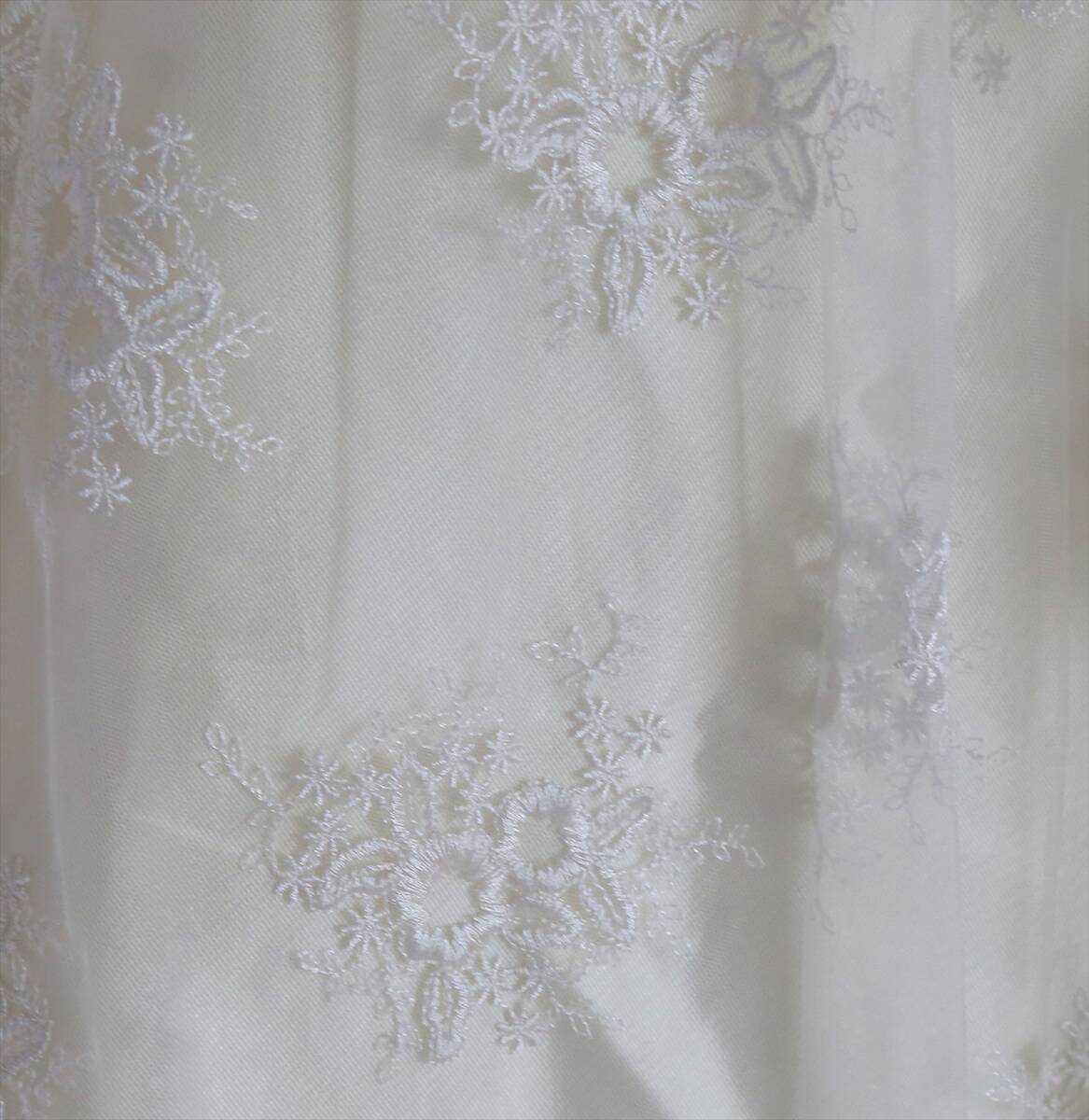 生地はミカドサテンをメインに、一部に刺繍が施されたチュールが使用されています
