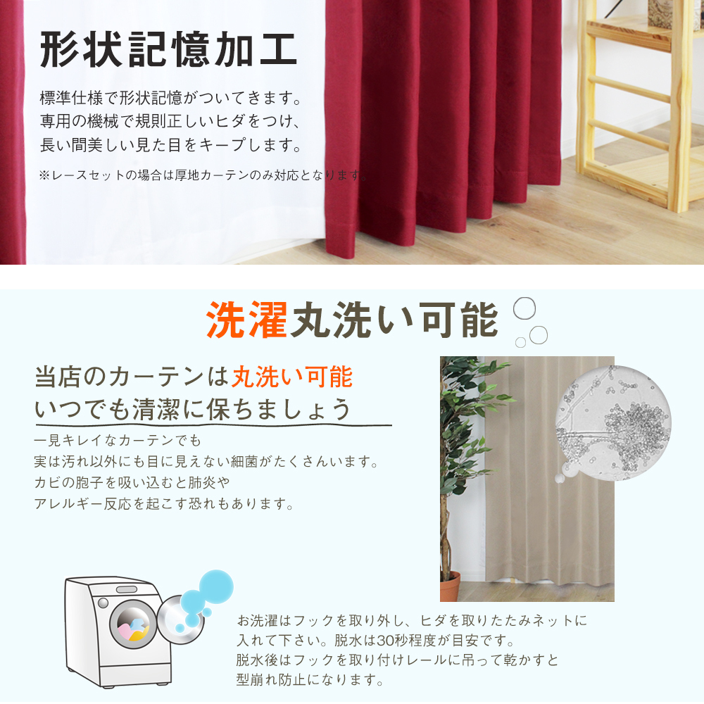 完全遮光厚地カーテン1枚 レース1枚 2枚組