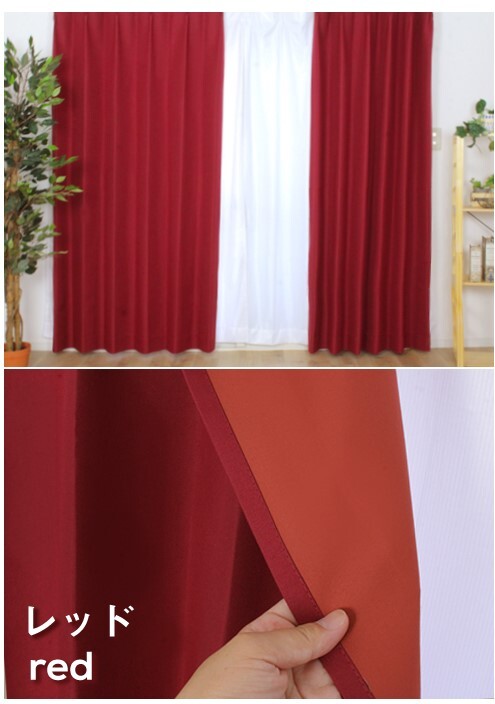 【運賃込】完全遮光・1級遮光カーテン・レース 2枚セット タッセル付 レッド 巾150㎝×丈135㎝ 未使用 メルク