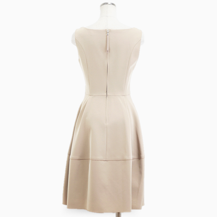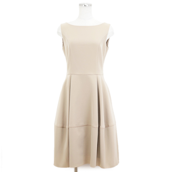シリーズFOXEY フォクシー ドレス バロン ボートネック ノースリーブ フレア ワンピース レディース 38 ベージュ 日本製