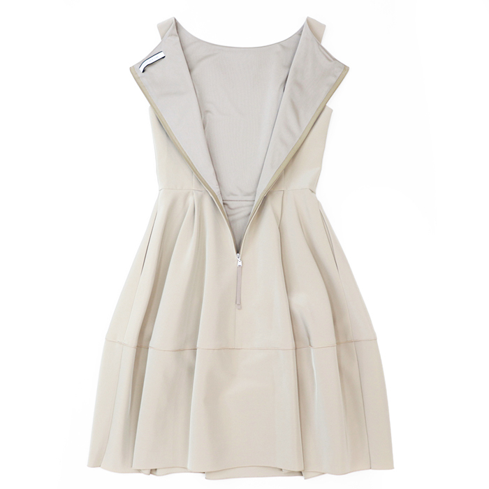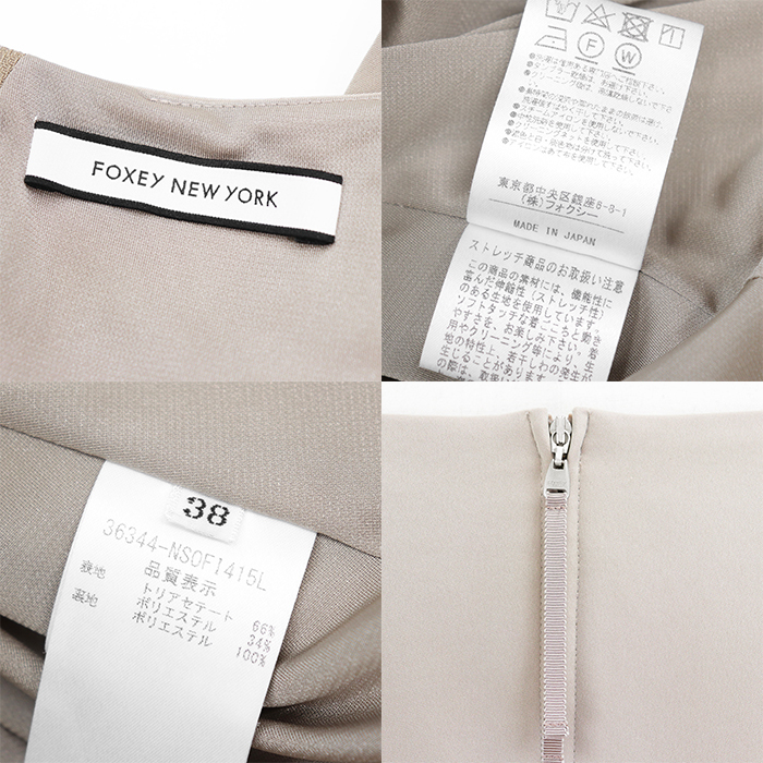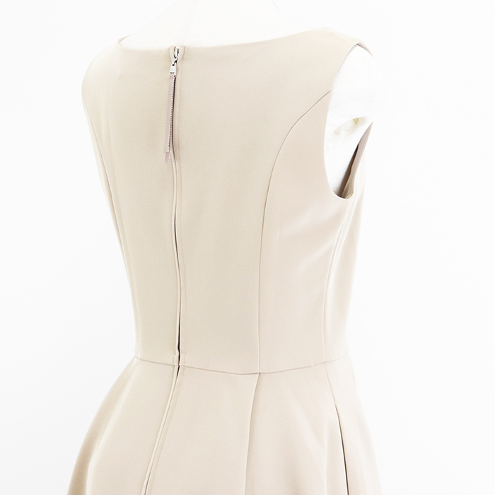 SALE【極美品】FOXEY フォクシー ワンピース ドレス バロン ボートネック ノースリーブ フレア レディース 38 ベージュ 日本製