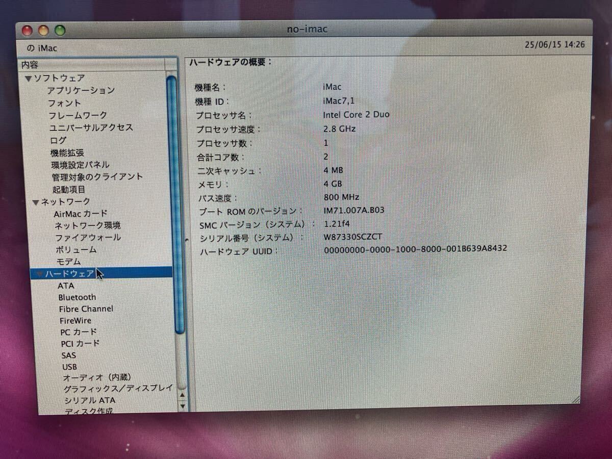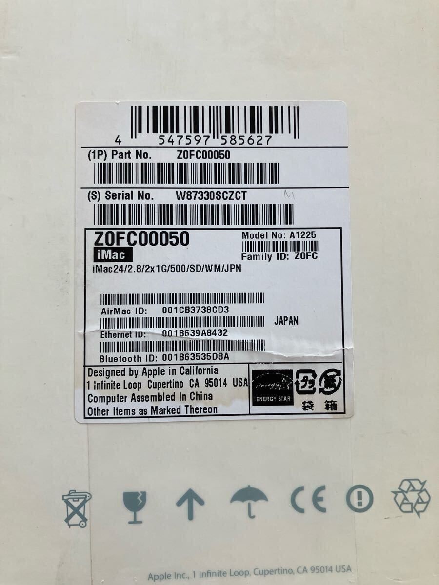 iMac 24インチ Mid2007 A1225 C2D CTO
