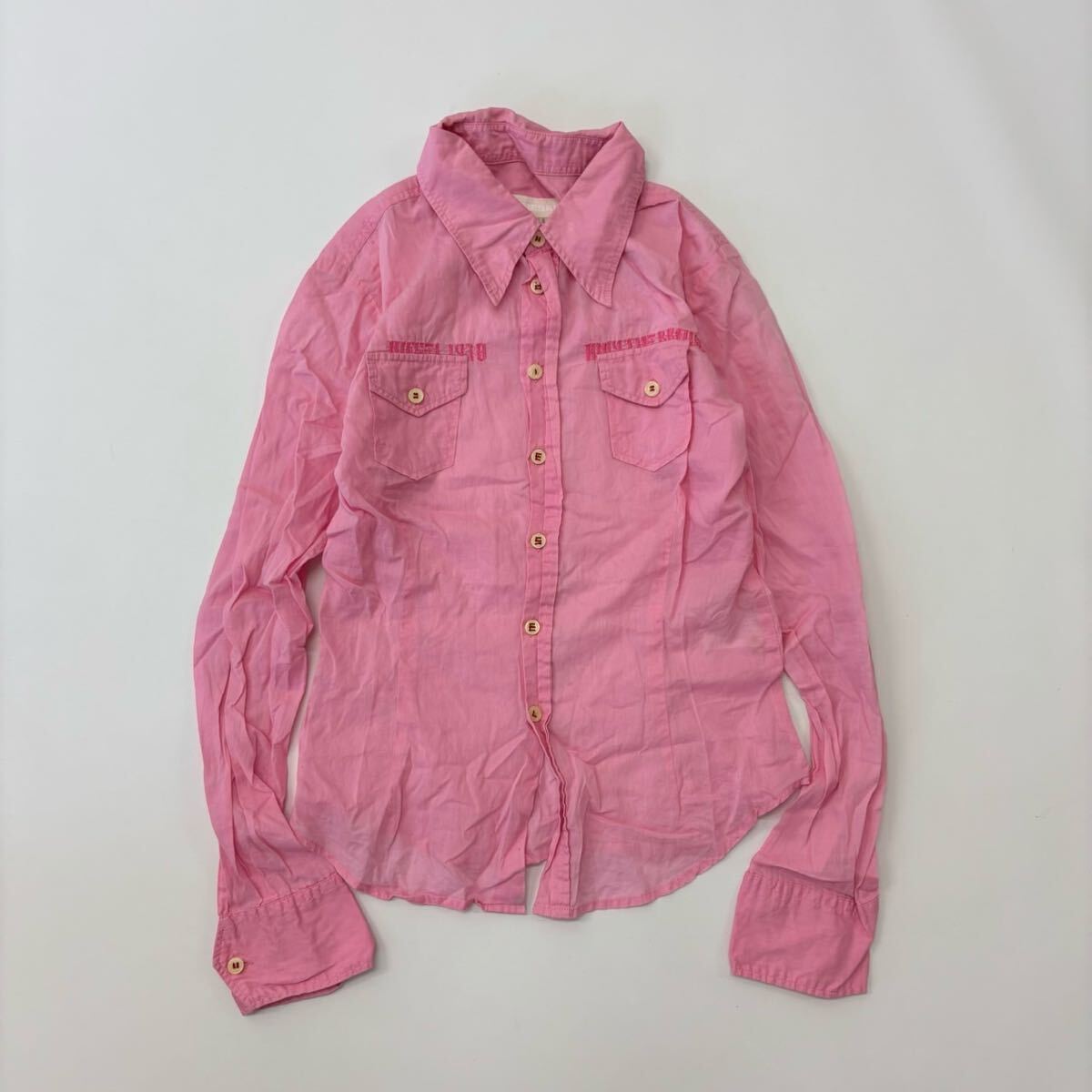 DIESEL ディーゼル ロゴ 刺繍 長袖 シャツ ピンク 系 サイズ S 706