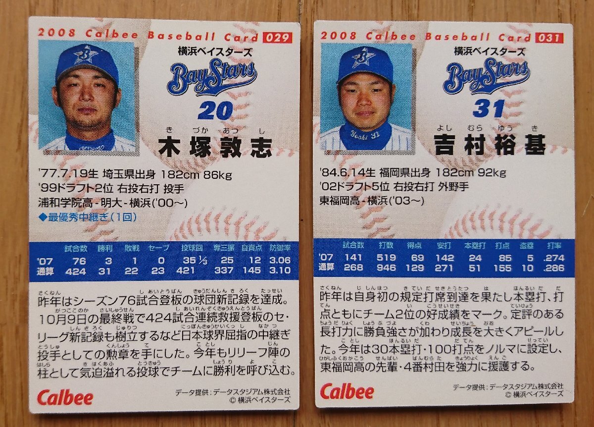 【カード・カルビー2008年】木塚敦志 029 / 吉村裕基 031 計2枚セット 横浜(DeNA)ベイスターズ カルビープロ野球チップス