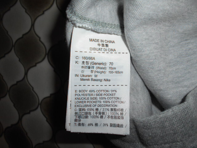 【備考】・・・・・・・㈱ナイキジャパン。コットン69%、ポリエ31%。 |