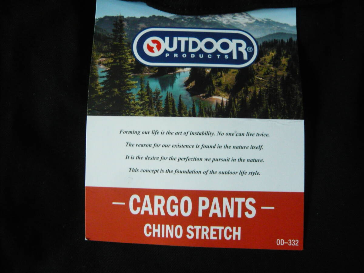 OUTDOOR PRODUCTS アウトドアのチノストレッチ カーゴパンツ 新品、未使用品です。サイズはウエスト79 股下70 素材は綿98 ポリウレタン2% 特筆すべき問題点はないと思いますが個人保管品になりますのでご理解の上入札お願いします。気になる方は入札ご遠慮ください。ノークレームノーリターンでお願いします。
