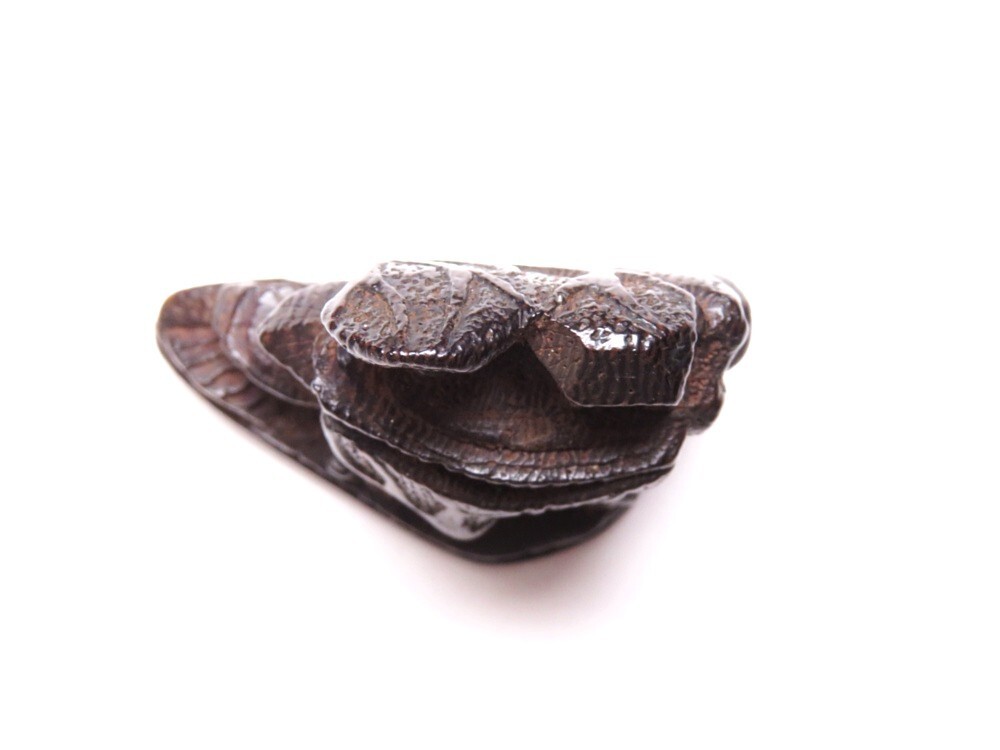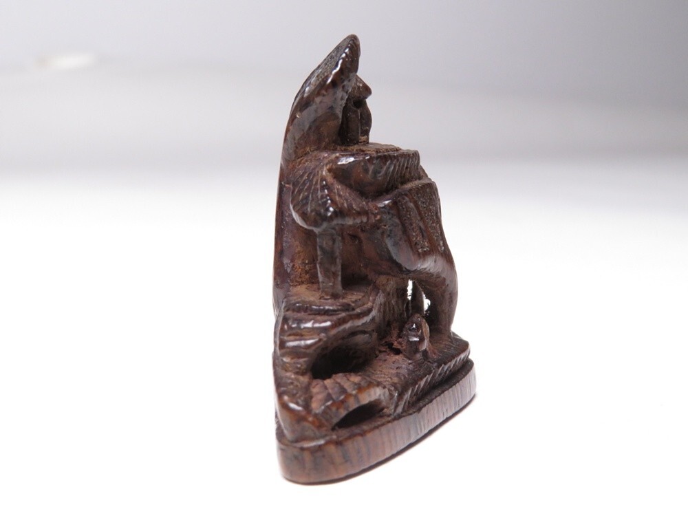 ●明治期 堤物 葛家彫 根付になります。古い物ですが極力状態の良い作品を出品しておりますので是非ご覧ください。 【状態】 ●経年を考慮し状態はよいと思います。 【サイズ(約)】 ●高さ3cm 幅3.4×1.7㎝ (素人寸法ですので、若干の誤差はお許し下さい) 【発送】 出張等により発送に一週間ほどお時間を頂戴する場合がございます。 【領収書】 領収書発行は致しておりません。 Yahoo!かんたん決済手続き完了時の確認画面をプリントアウトして領収書としてお使い下さい。 ※領収証として税務署に認められております。 ご了承のうえでのご参加をお願いいたします。以下の注意事項もご確認ください。 |