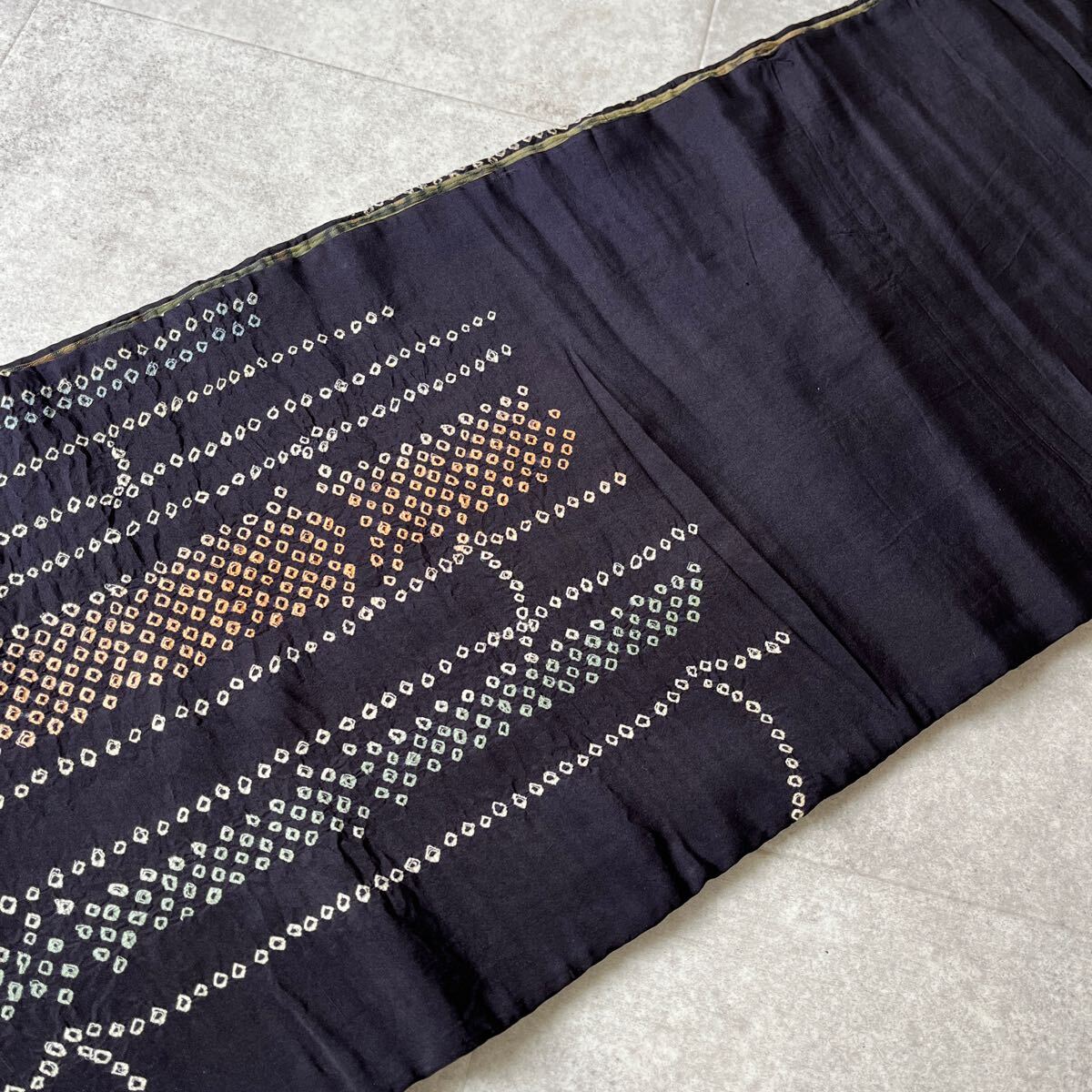 アンティーク 昼夜帯 着物 リバーシブル 絞り 鳥 ベージュ 昭和レトロ 大正ロマン モダン 和洋折衷コーデ リメイク き01-13t