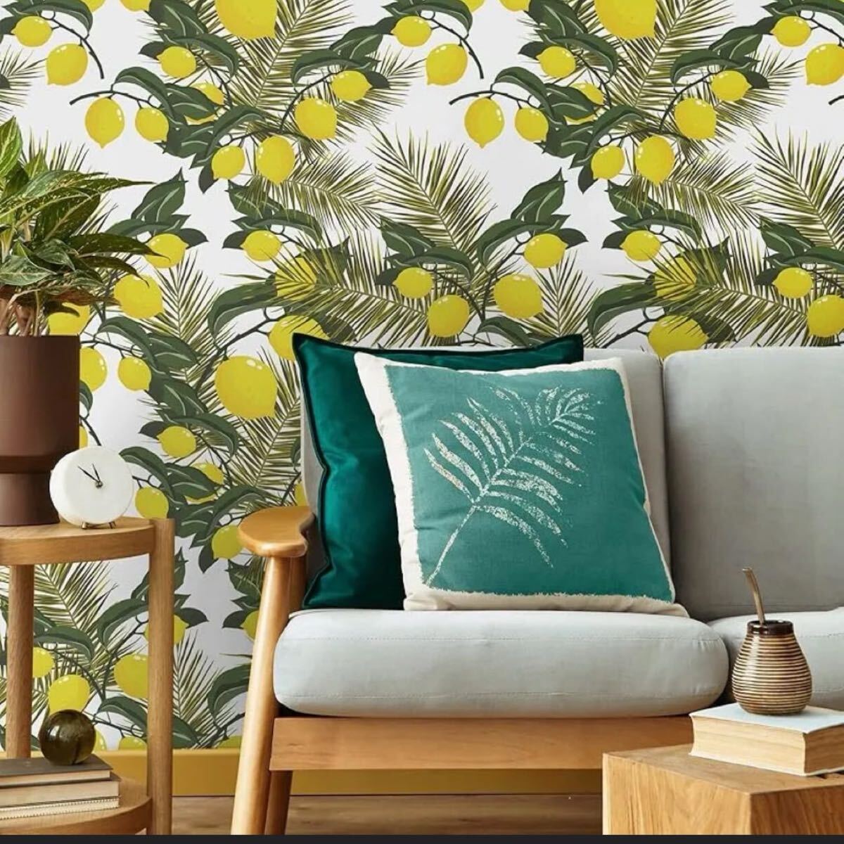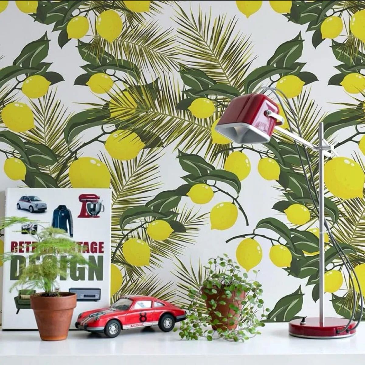 レモン柄の壁紙シール 適用範囲:壁、キャビネット、本棚、引き出し、階段、クローゼット、ウォールパネル、テーブル、カウンタートップ、キッチン、寝室、居間、保育園、女の子の部屋、パントリー、アクセントの壁を素早く改造する。カフェ、ショップ、オフィスの装飾、撮影背景のアイテムとしても楽に使えます