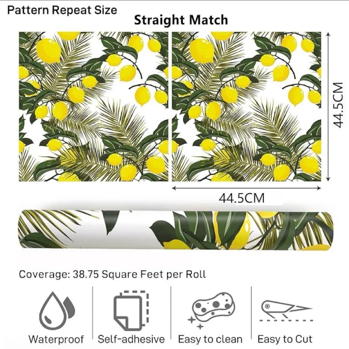 レモン柄の壁紙シール サイズ:44.5cmx800cm