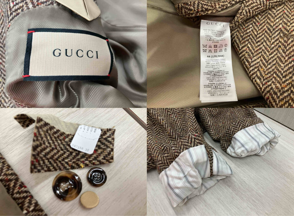 | 【ブランド名】 GUCCI 【表記サイズ】 44 サイズ表記(~cm位)は目安です。ブランドやデザインによって多少前後する場合がございます。予めご了承の上ご注文ください。 【カラー】 ブラウン系 【付属品】 衣装カバー ハンガー 画像の物が全てです 【平置きサイズ】 着丈:約107cm 袖丈:約 64cm 身幅:約 52cm 肩幅:約 42cm 衣装カバー:全長 約140cm | ||||||