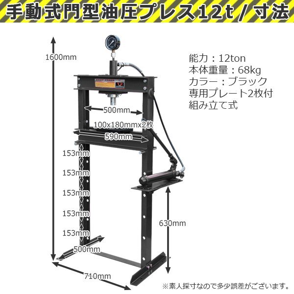 ◆メーター付◆12t 油圧プレス 門型 12トン ショッププレス 門型プレス機 自動車バイク 整備 鉄板の歪み修正に! ★黒色