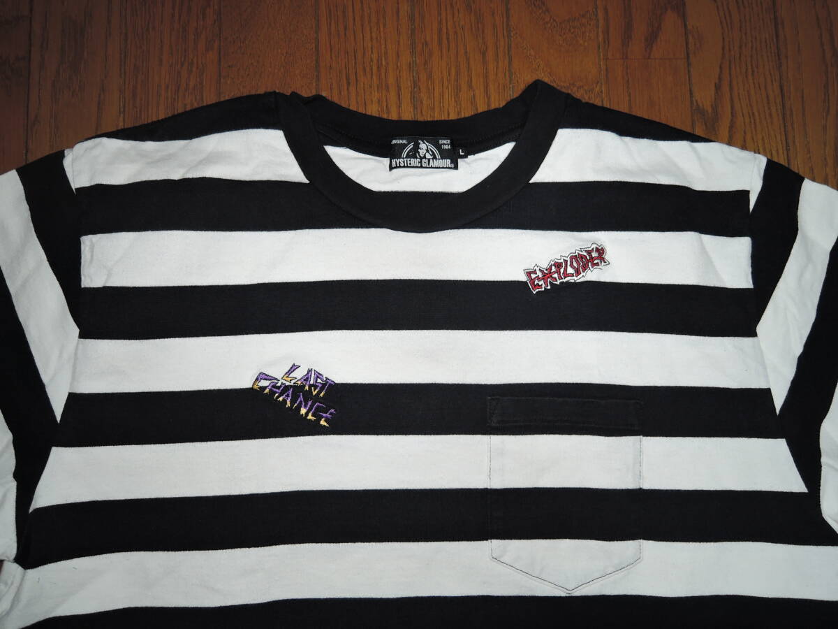 HYSTERIC GLAMOUR ヒステリックグラマー FERGADELIC METAL刺繍 ポケ付Tシャツ L 白黒 ボーダー柄 / Pocket TEE カットソー ボーダーTシャツ