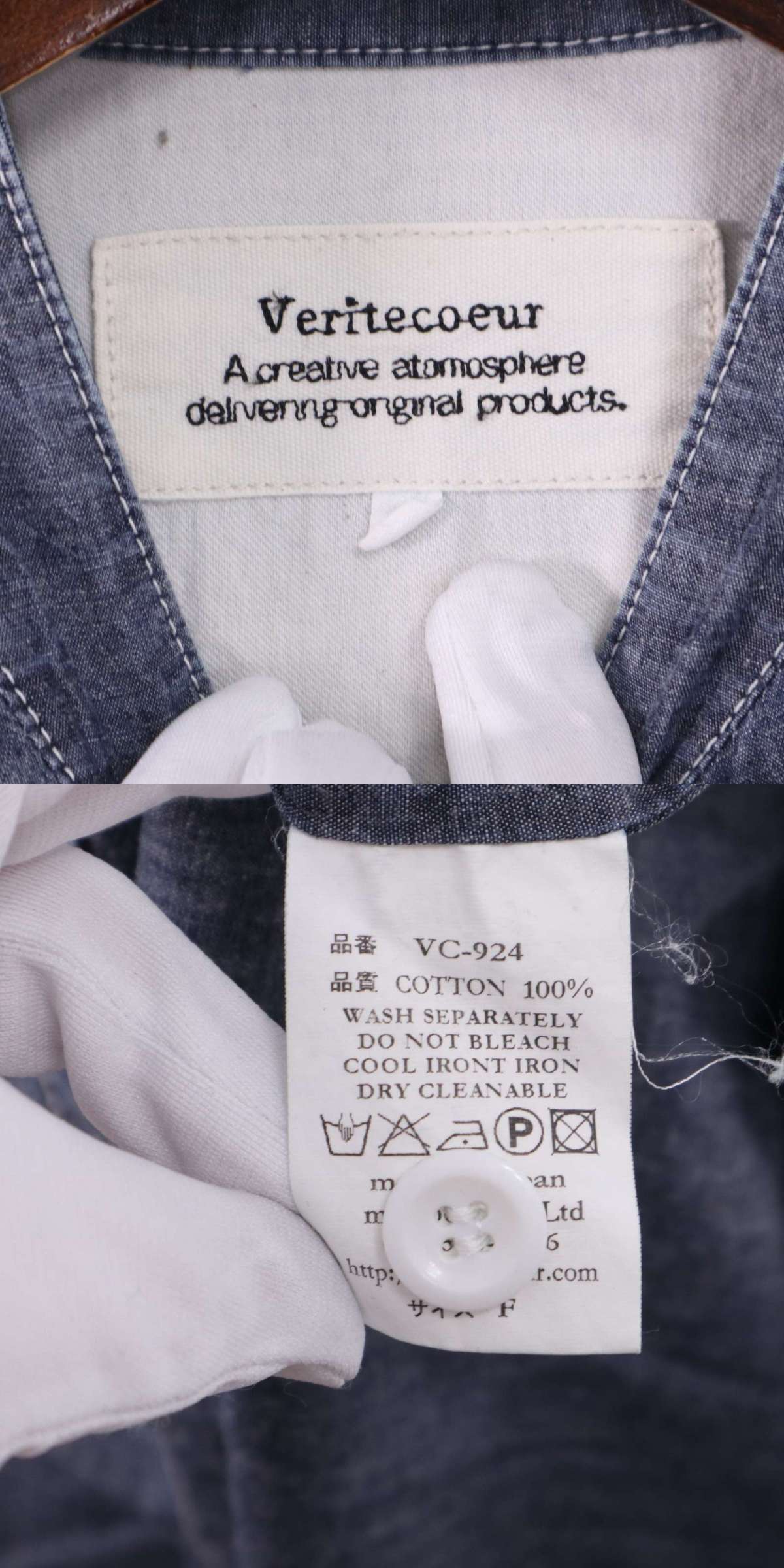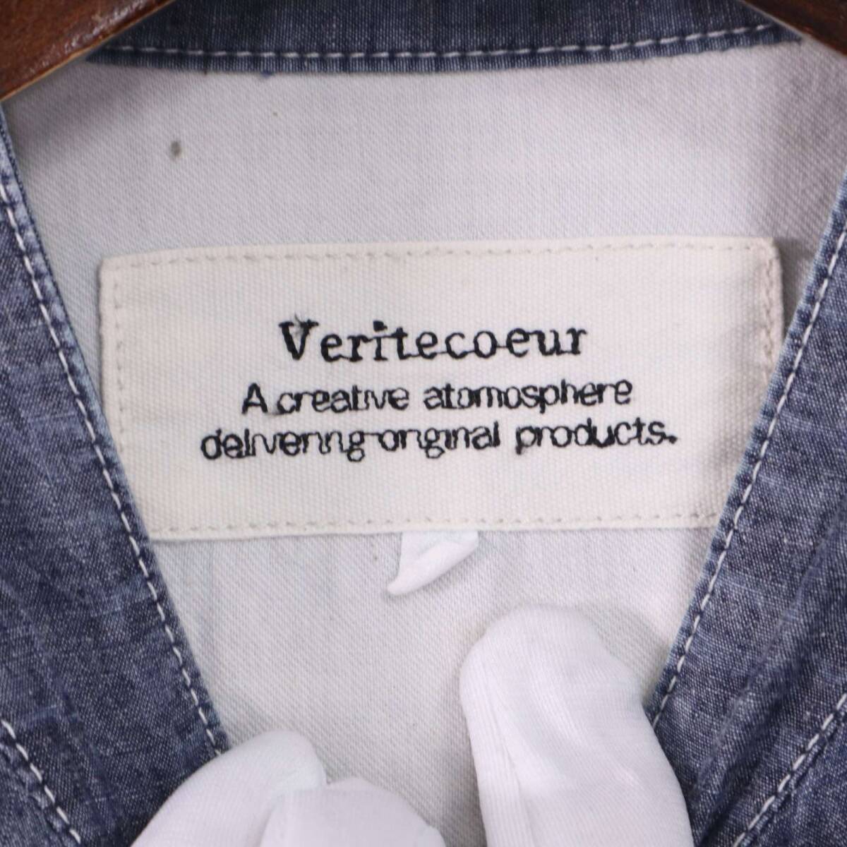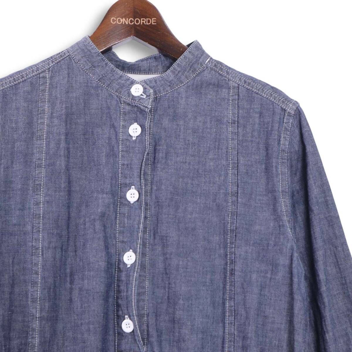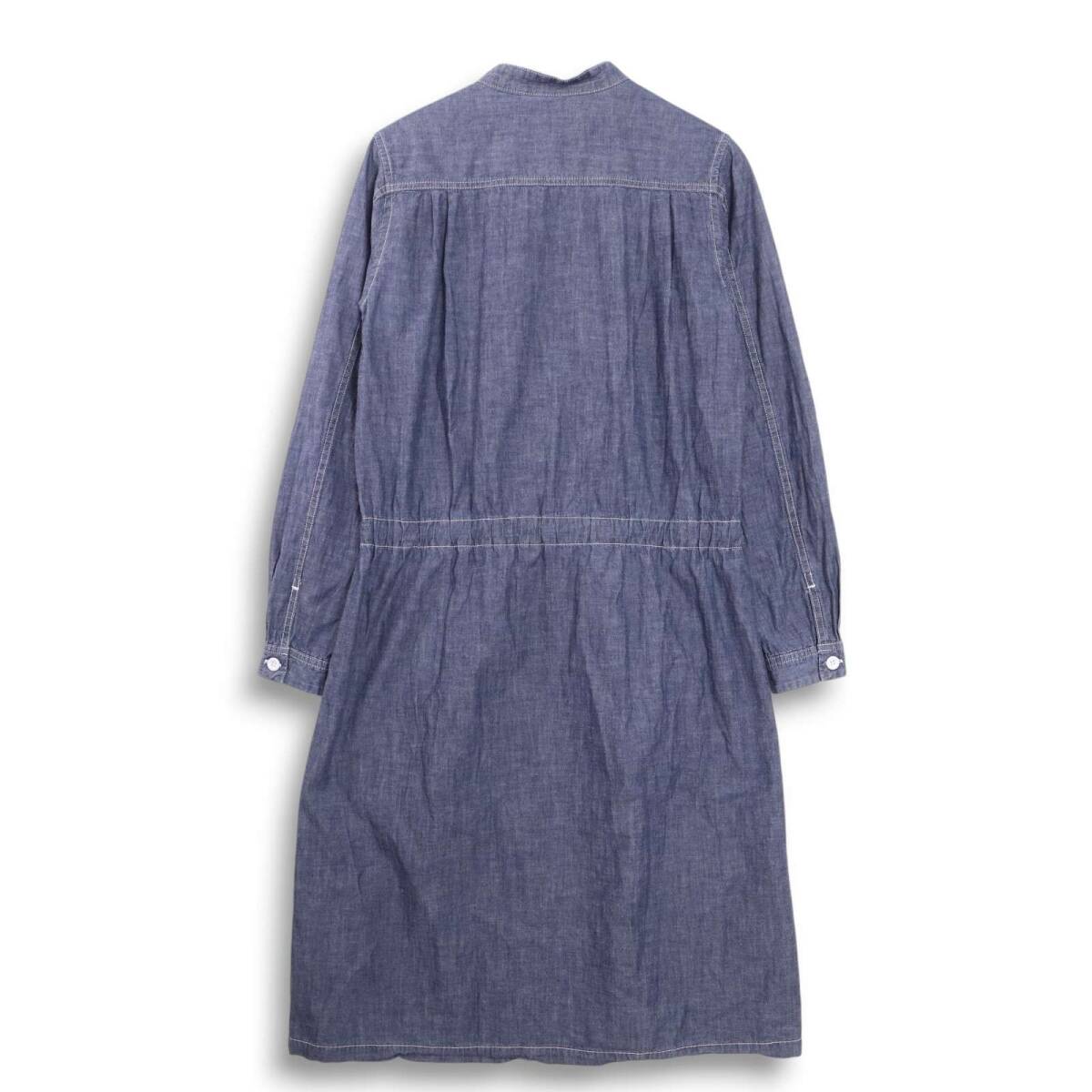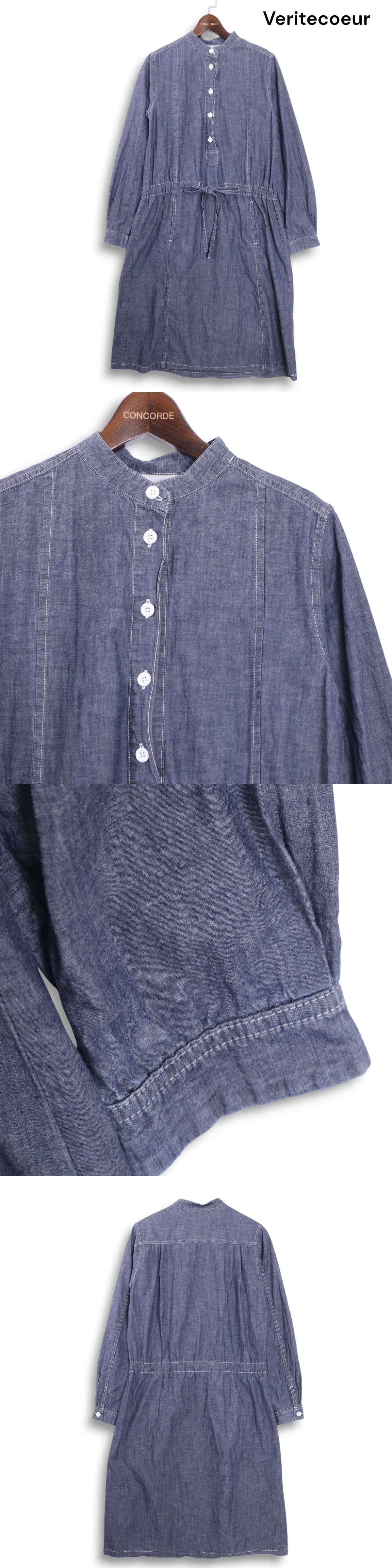 Veritecoeur ヴェリテクール 通年 シャンブレー★ ドローストリング 長袖 バンドカラー ワンピース Sz.F レディース