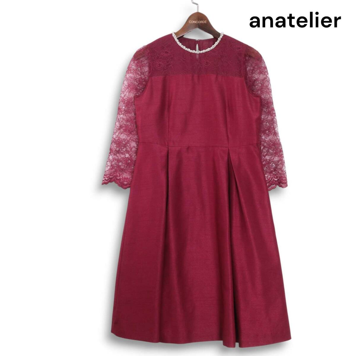 anatelier アナトリエ 春夏♪ 長袖 ポリエステル シャンタン レース ワンピース ドレス Sz.36 レディース 結婚式 二次会