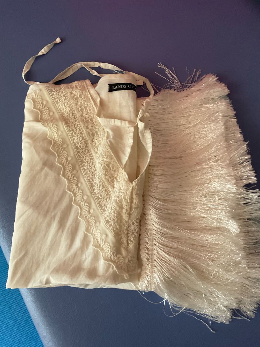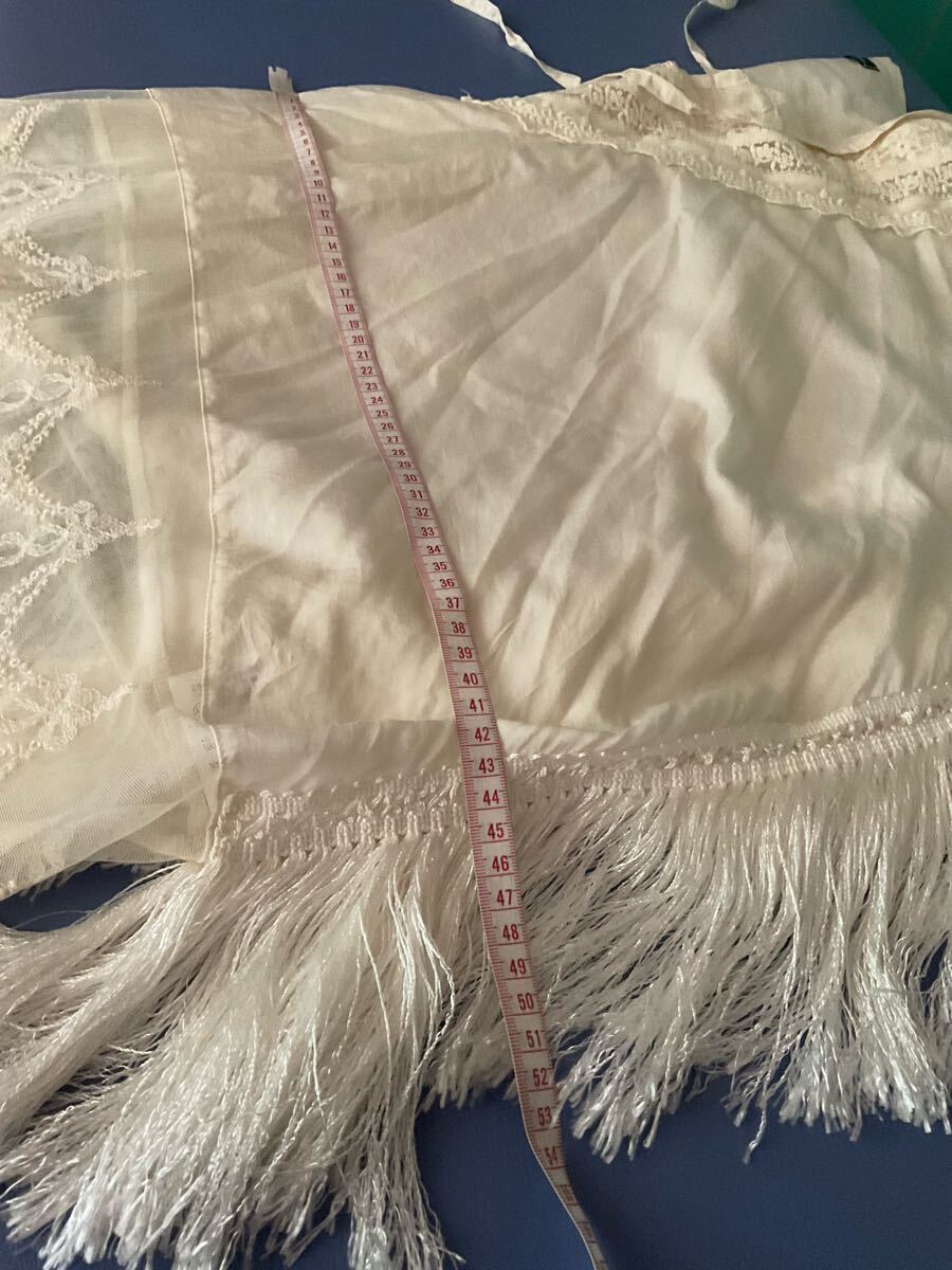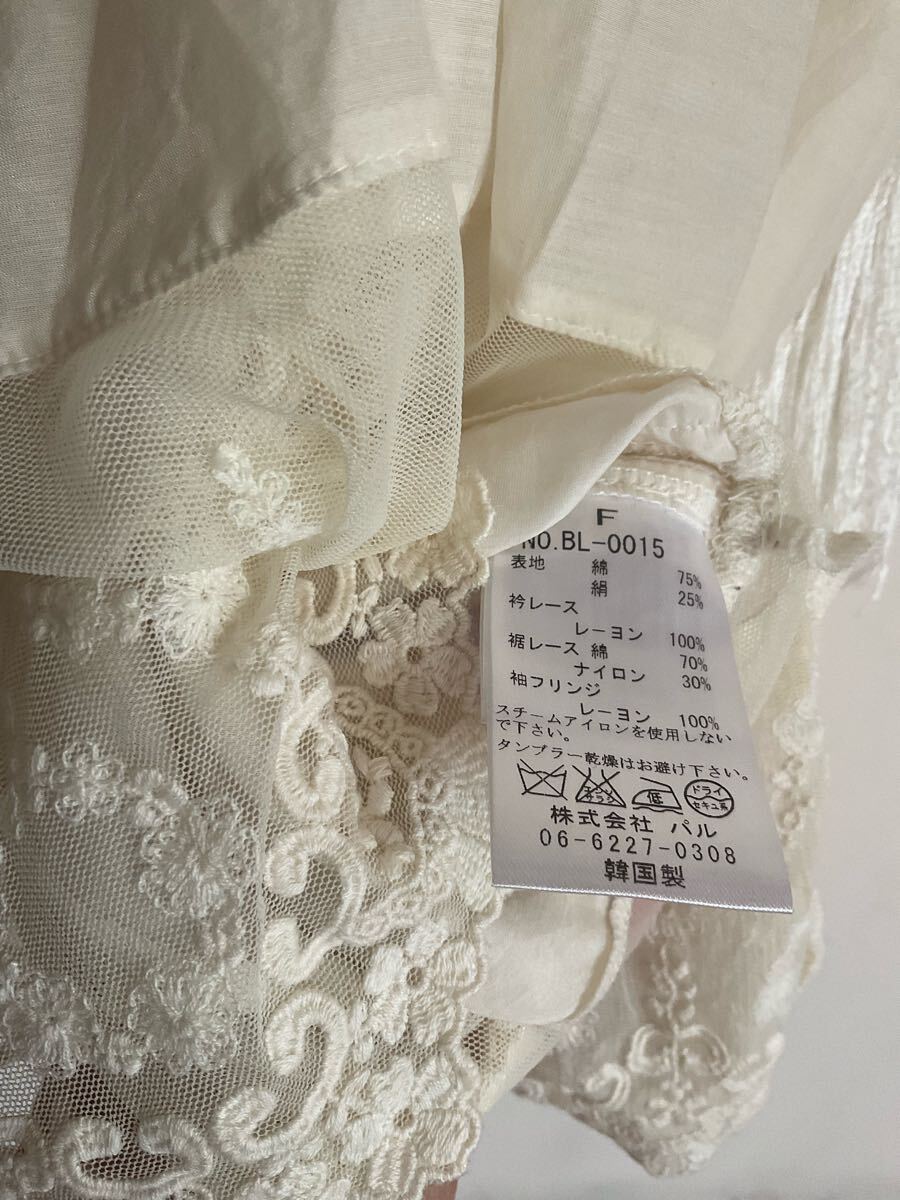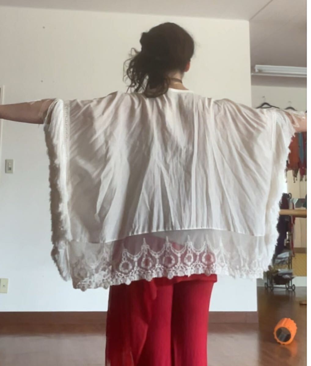 長いフリンジと繊細なレース装飾が特徴で、夏にぴったりの軽やかで風通しの良い素材を使用。