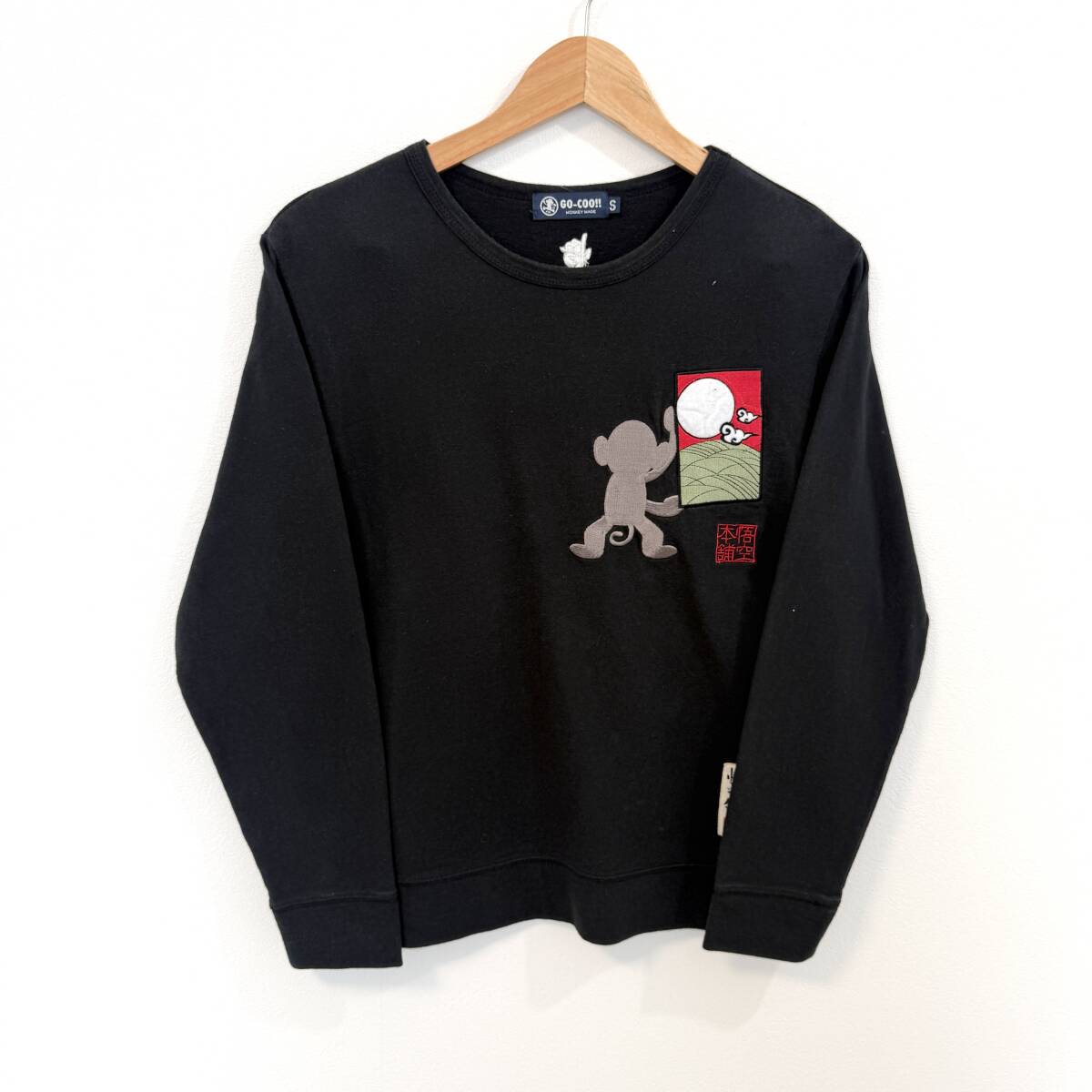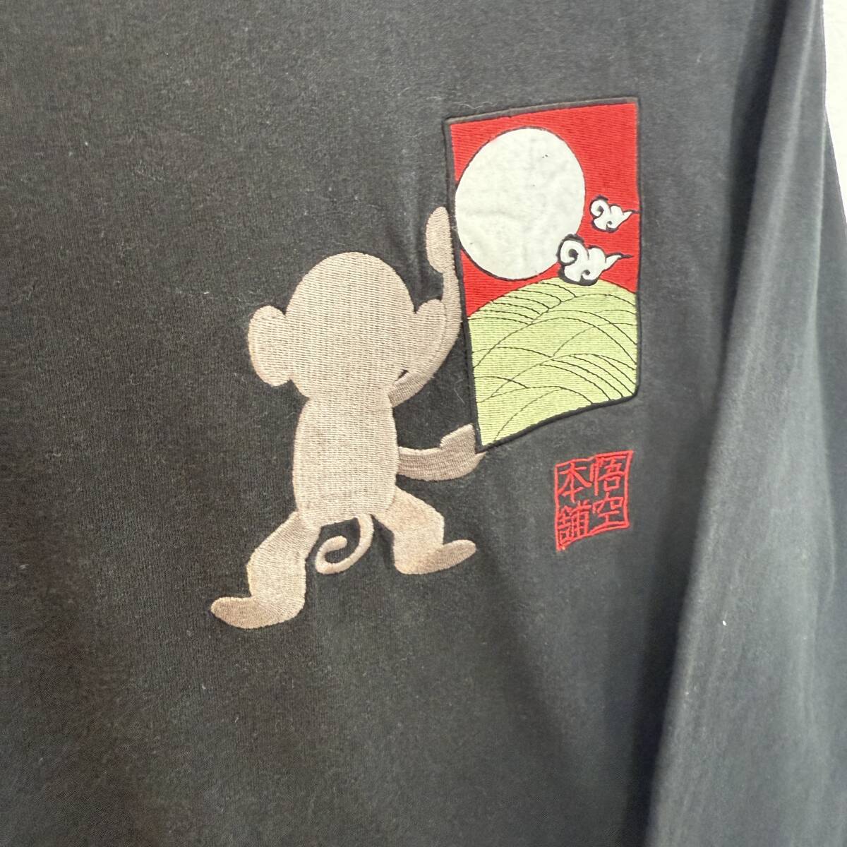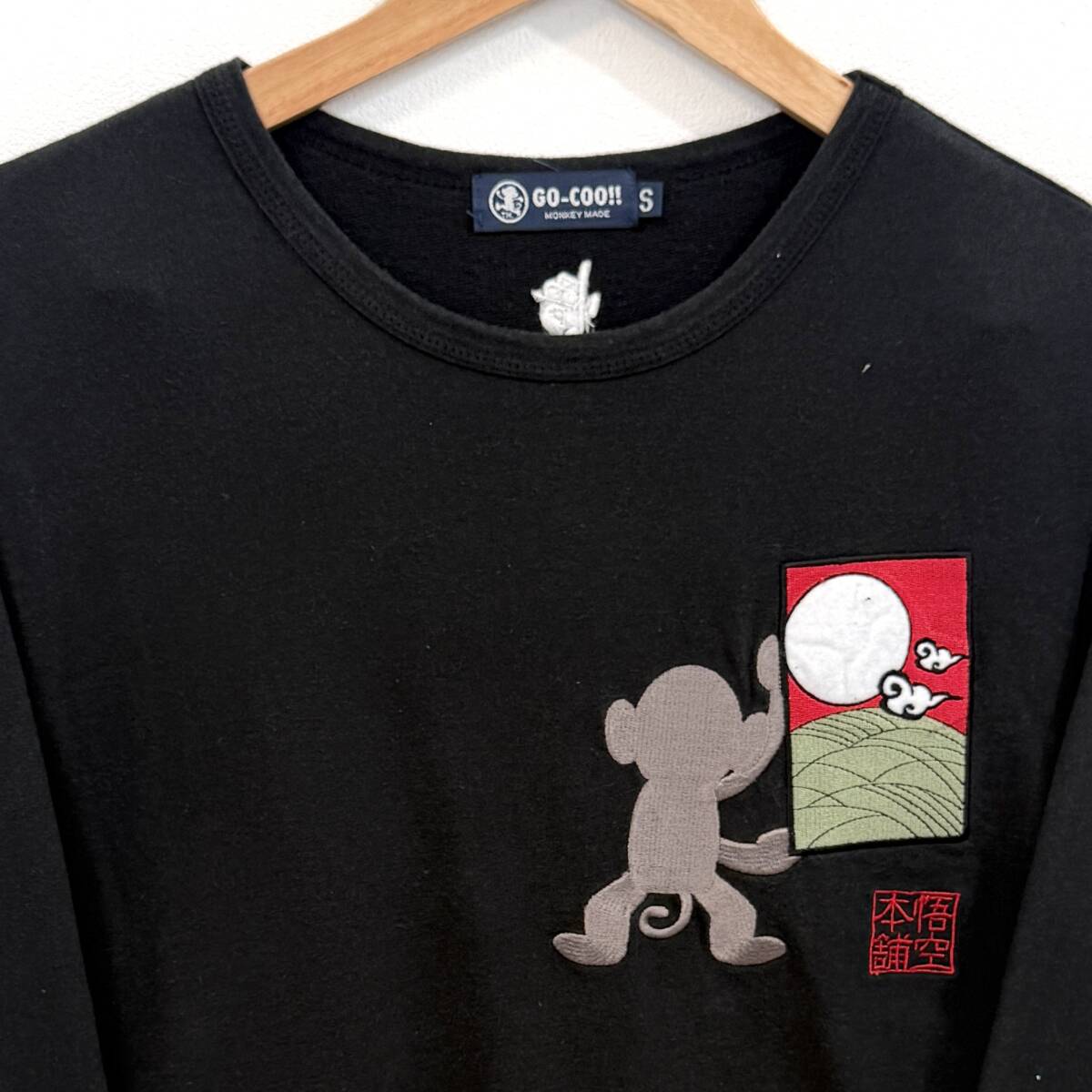 f3084ii GO-COO!! MONKEY MADE(ゴクー!!モンキーメイド) サイズS 和柄ロングTシャツ 悟空本舗 ブラック系 メンズ 綿100%